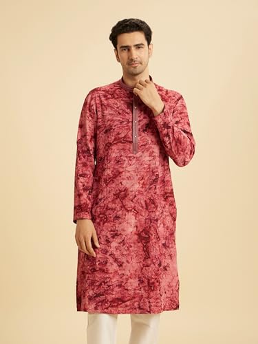 Manyavar Men's Spandex Self-Textured Kurta Set (Maroon,XL)