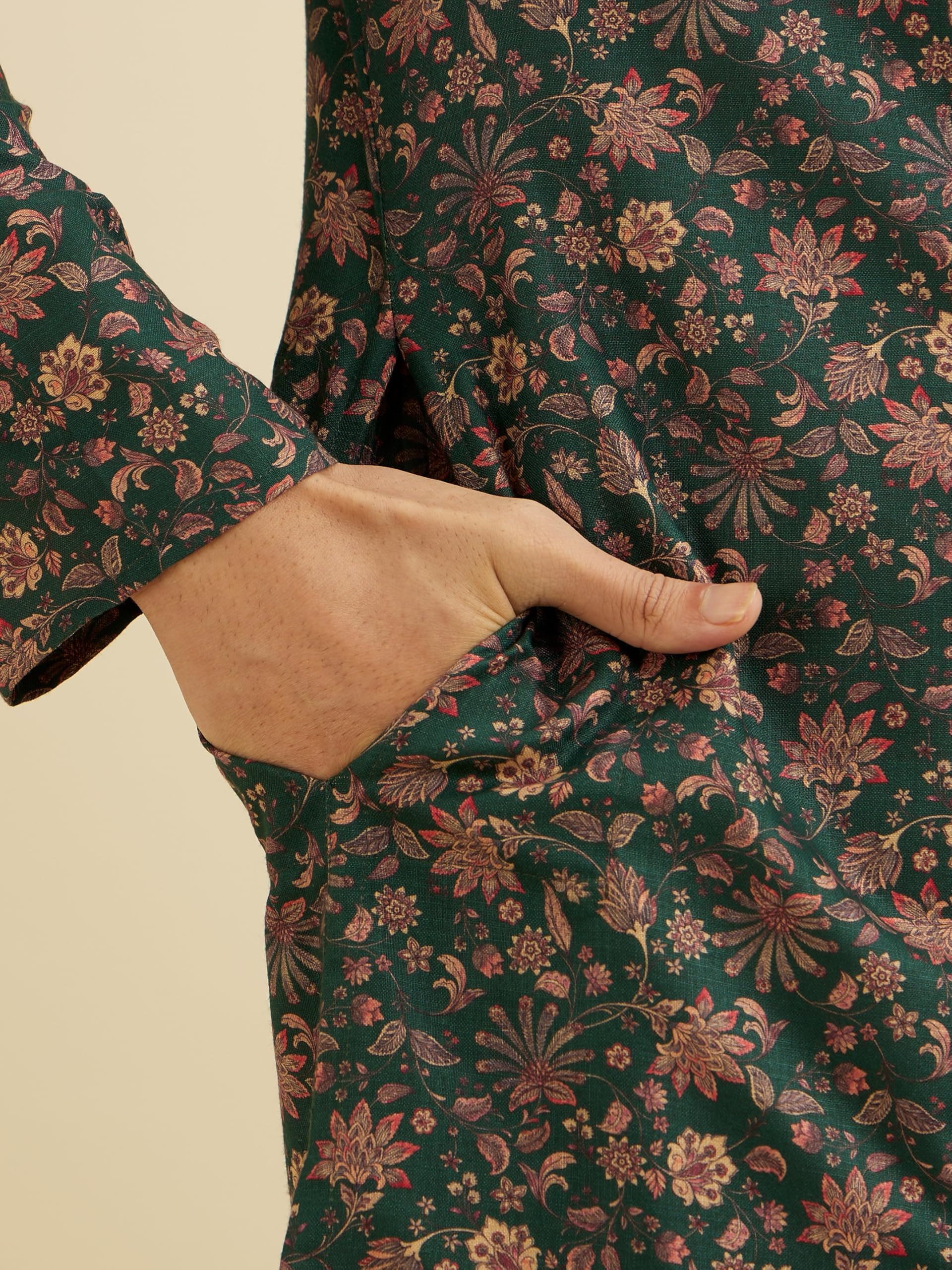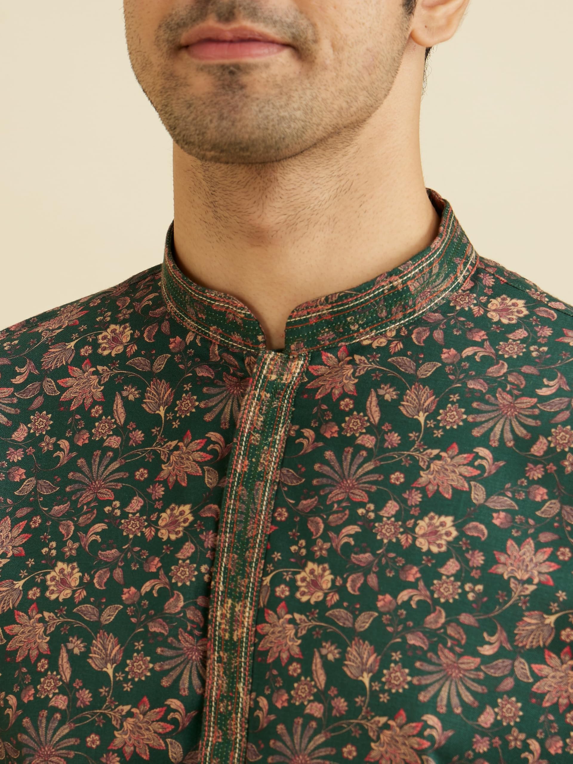 Manyavar Men's Viscose Blend Digital Print Kurta Set (Dark Green,M)