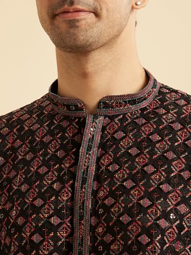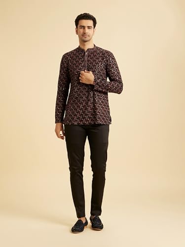 Manyavar Men's Viscose Chikan Embroidery Short Kurta (Black,L)