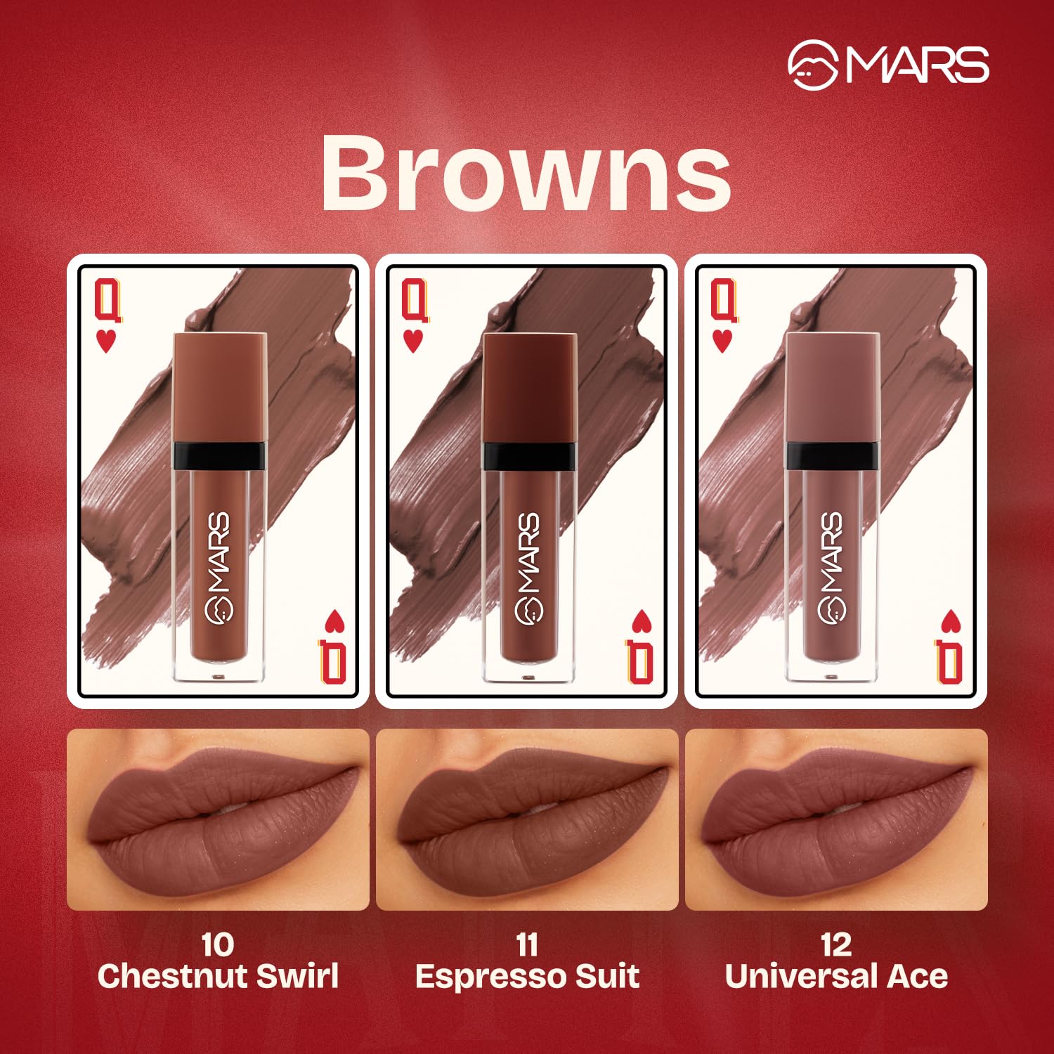 MARS Queen of Mattes Liquid Lipsticks Box Set of 3 (13.5 ml) (BROWNS) | Smudgeproof & Transferproof | Intense Pigmentation Long-Lasting Wear | Customizable Colors | Matte Finish