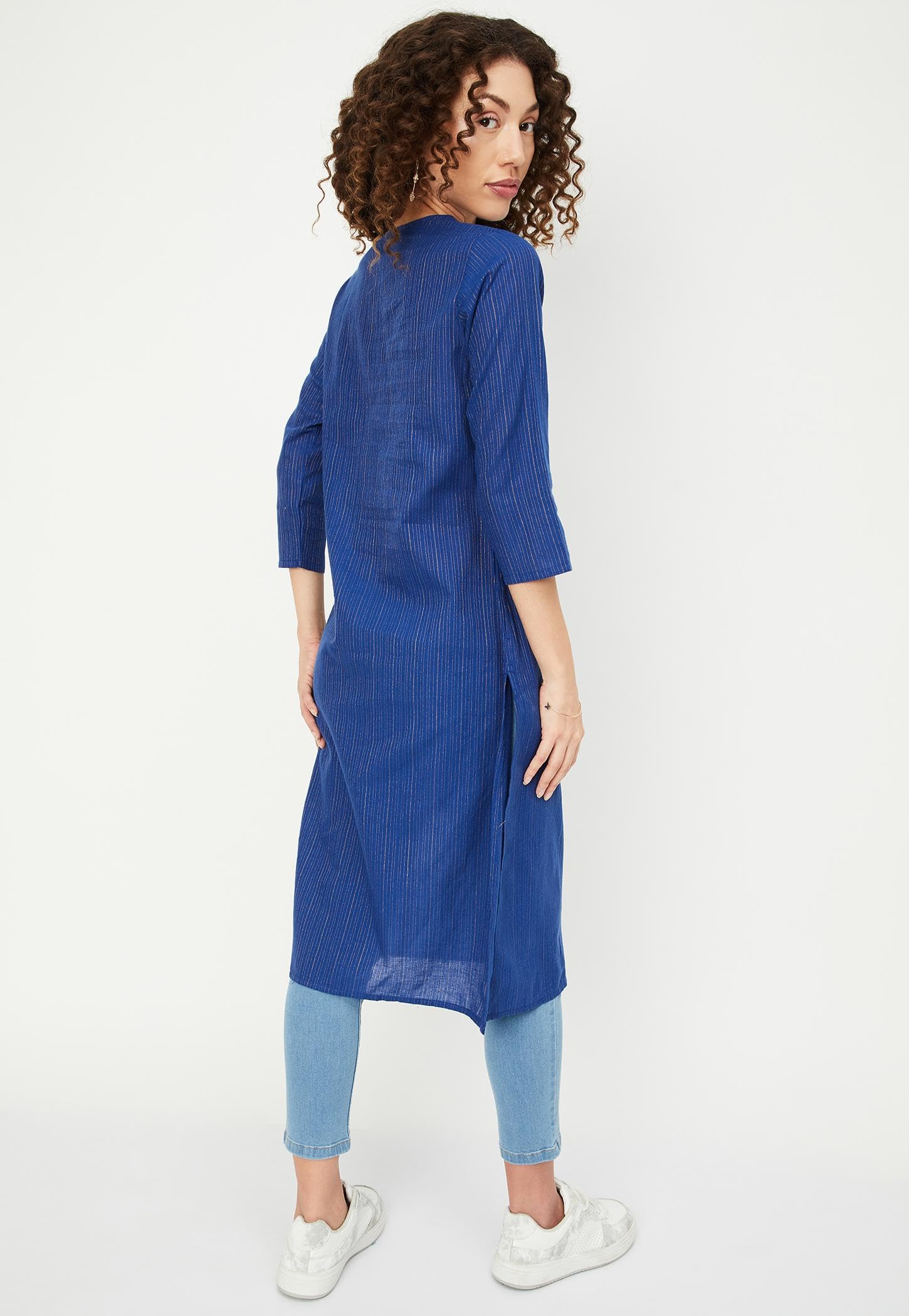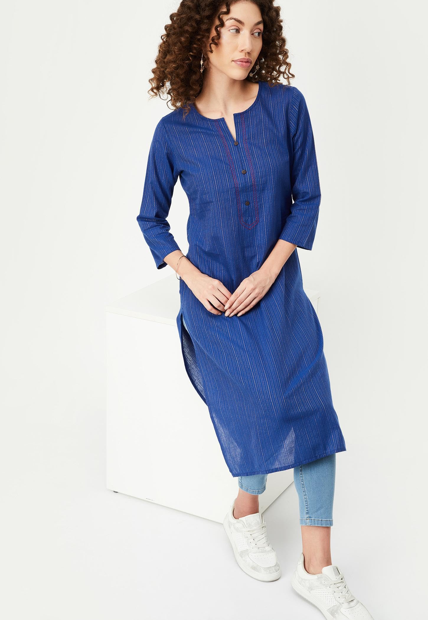 Max Cotton Blend Women Striped Regular Fit Straight Kurta (PKBL41001BLUE)_Medium