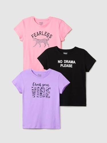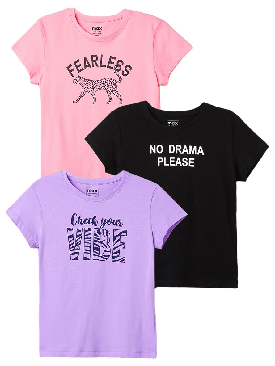 Max Girls Cotton Regular Fit Printed Round Neck Half Sleeve T-Shirt - Pack of 3, Blue, 15-16 Years
