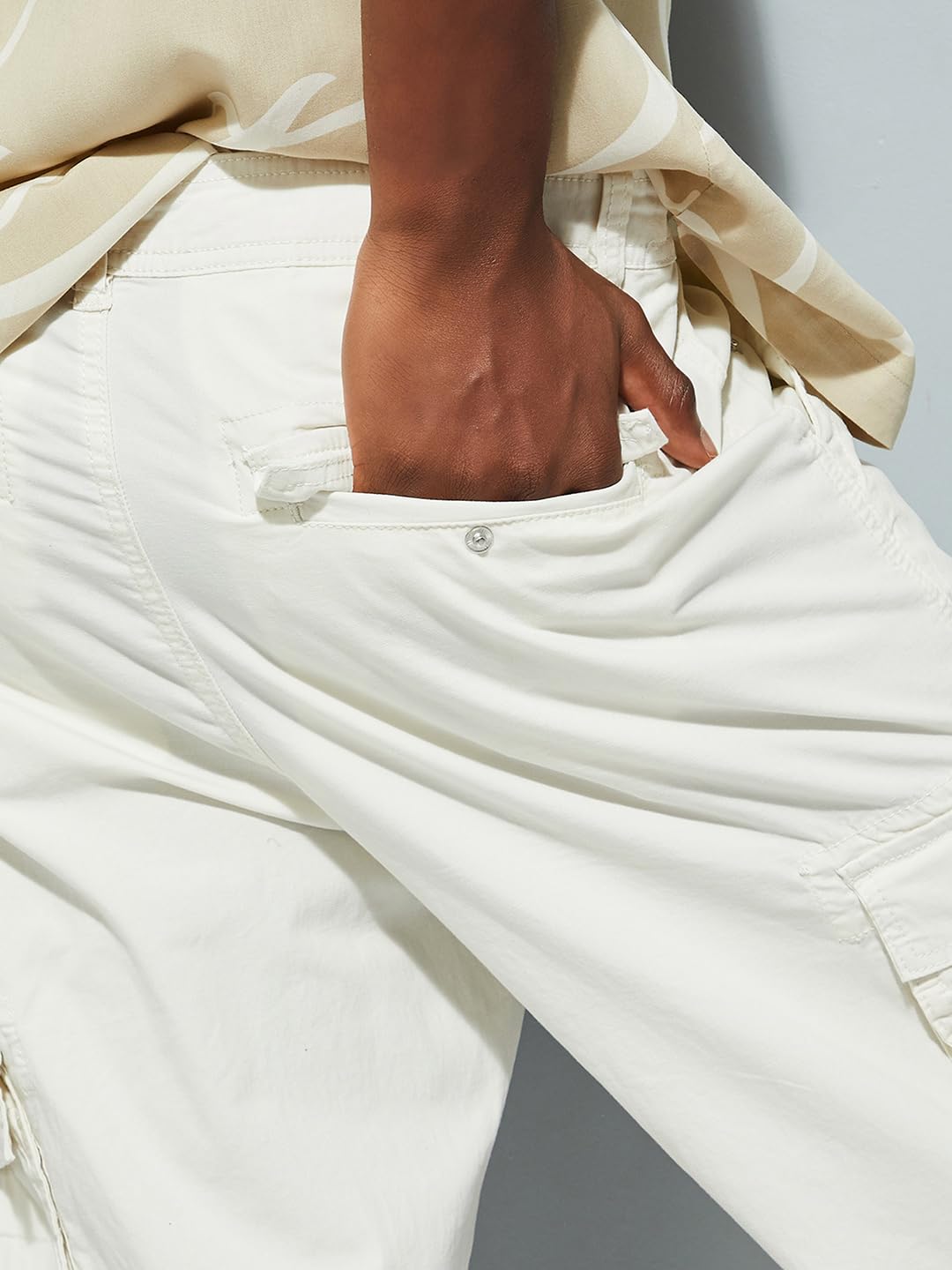 Max Men Mid Rise URB_N Relaxed Fit Parachute Cargo Pants (Off White_34)