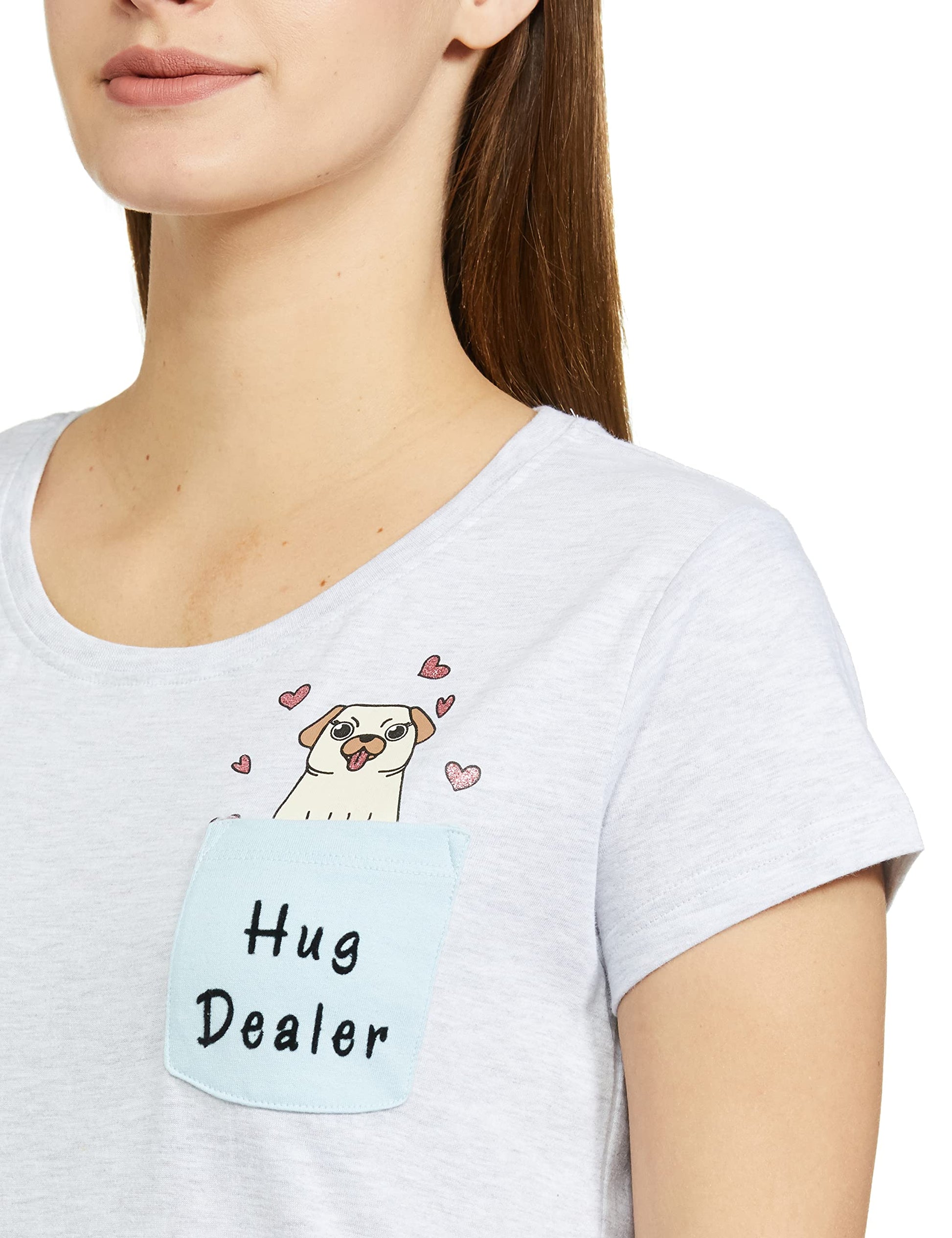 Max Women Printed Round Neck T-Shirt with Elasticated Pyjama,Grey Melange,M