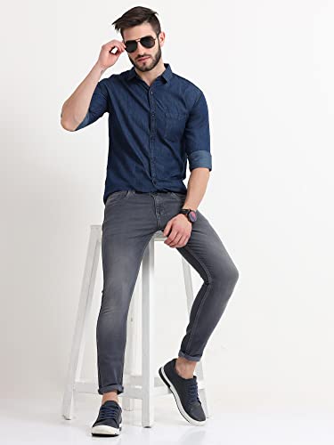 Miraan Men's Casual Dark-Blue Denim Shirt (SIGDARKDENIMXL_Dark Blue_X-Large)