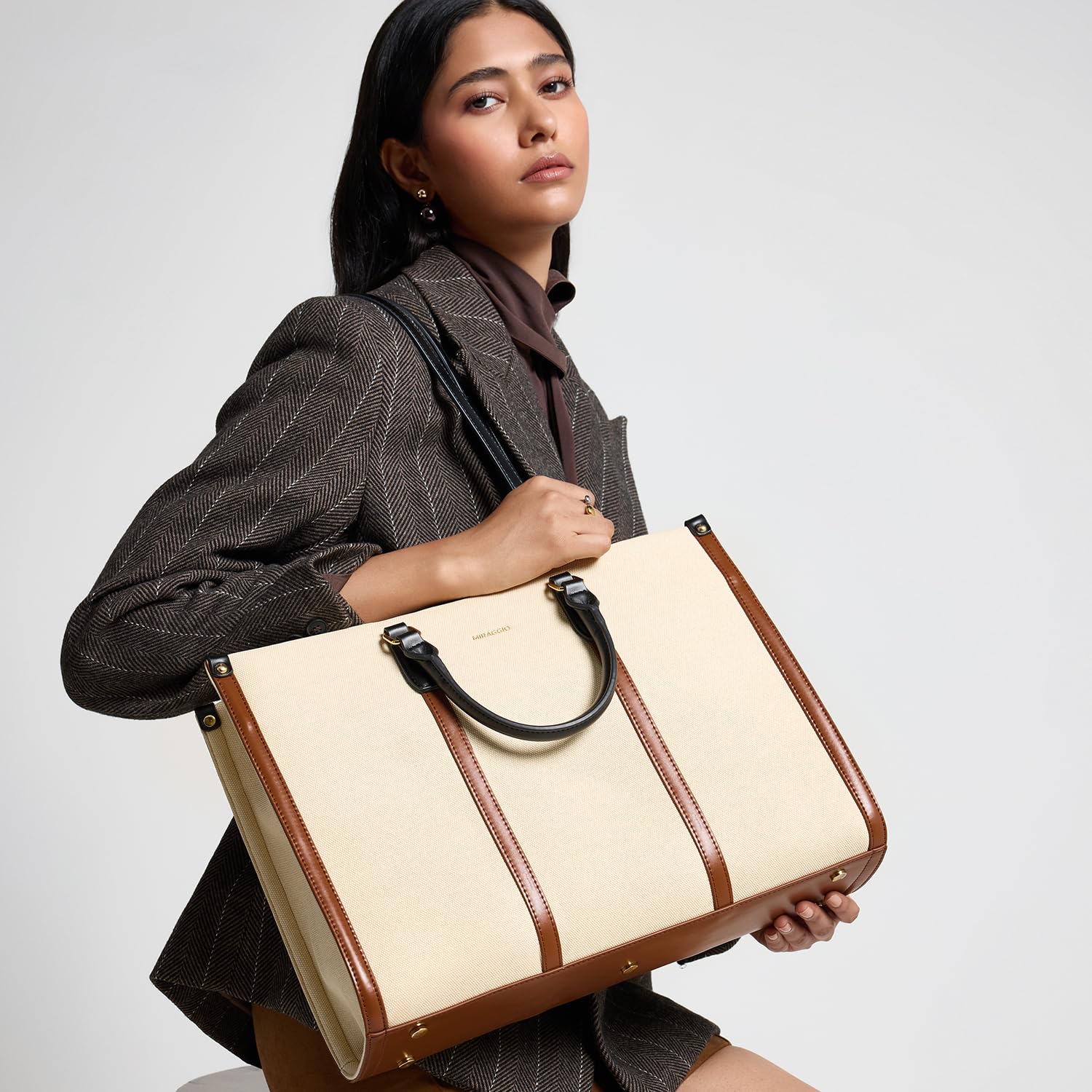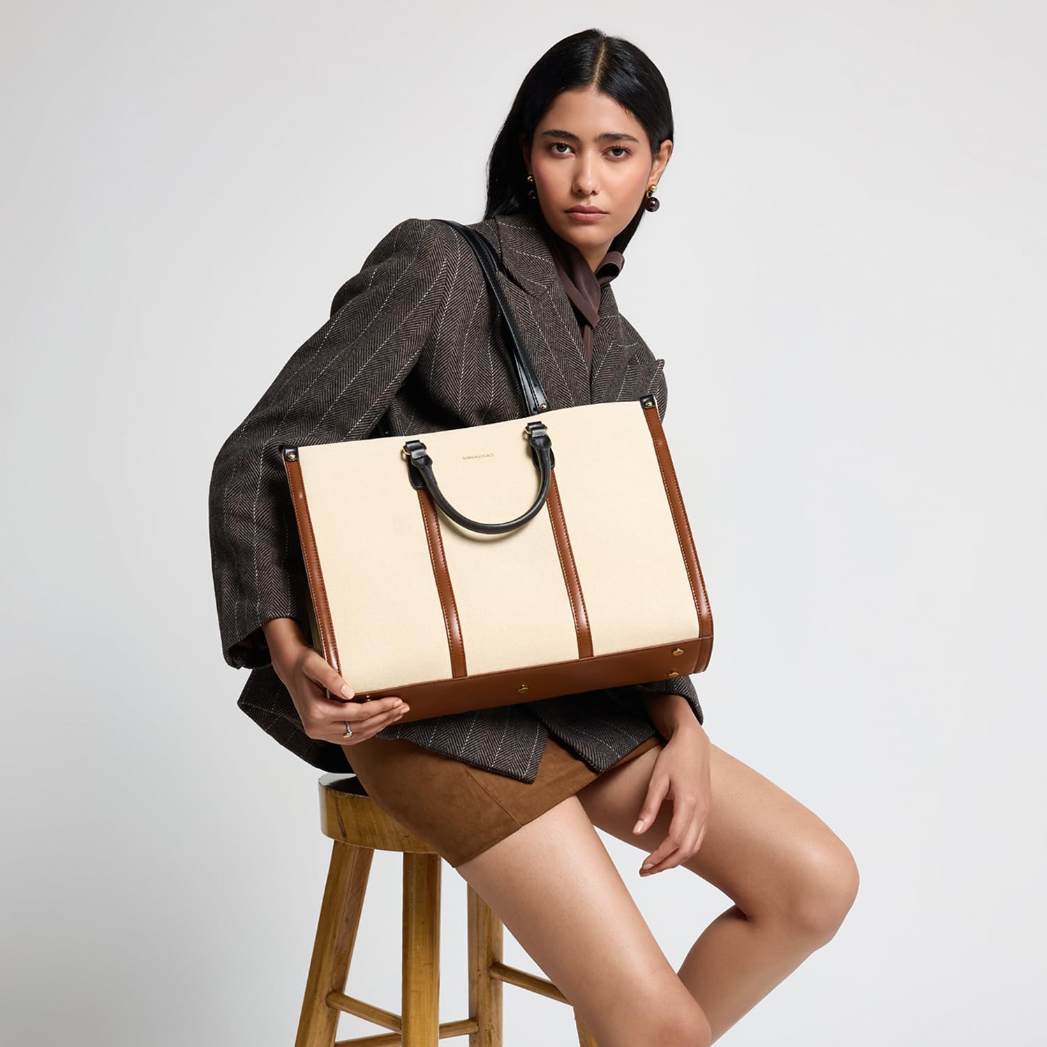 Miraggio Beverly Canvas Laptop Tote Bag | Fits Upto 16 Inches Laptop | Shoulder Bag For Women Office Use | Office Bag For Women Stylish