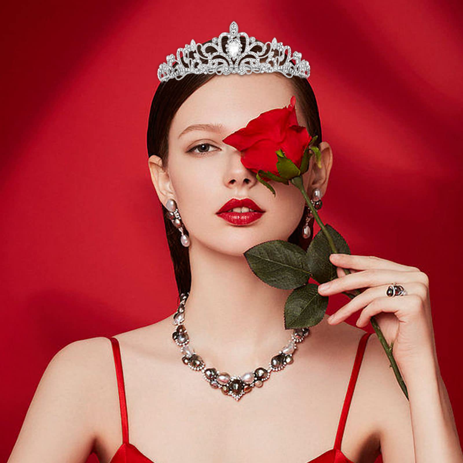 - Improved Tiara: Our rhinestone tiara is an improved version of our tiara, with a wider and larger tiara, the 14cm width of the crystal tiara is more suitable for our head shape. The heightened tiara will look more atmospheric and expensive, so you can have both comfort and beauty. The rhinestone tiara has a small comb at the end of each side for a tighter grip on the hair.