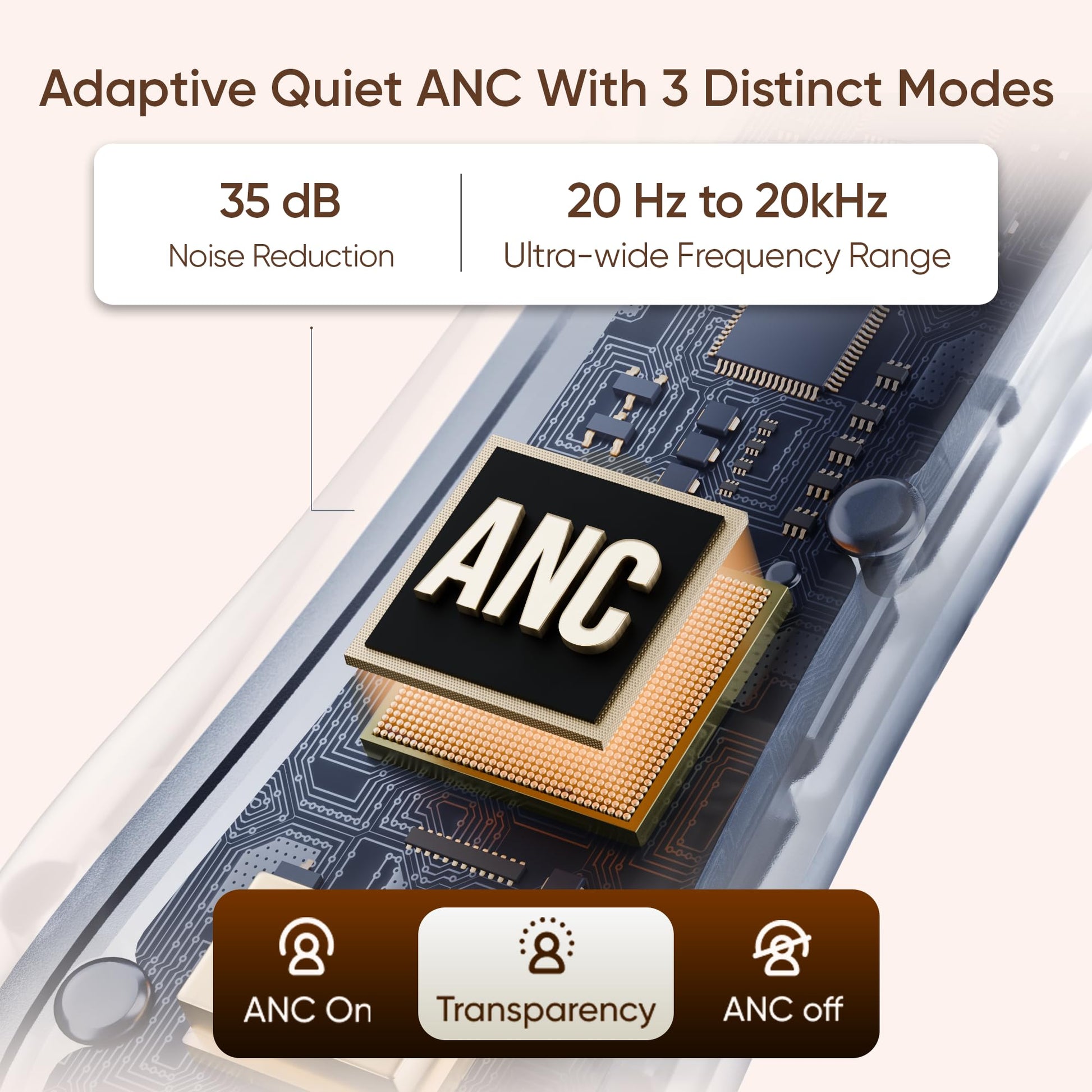 - Adaptive Quiet ANC for proactively detecting and reducing noise before it enters the ear canal. This makes it effective against consistent, predictable noises like the bustle of a metro or the commotion of traffic while commuting on the road.