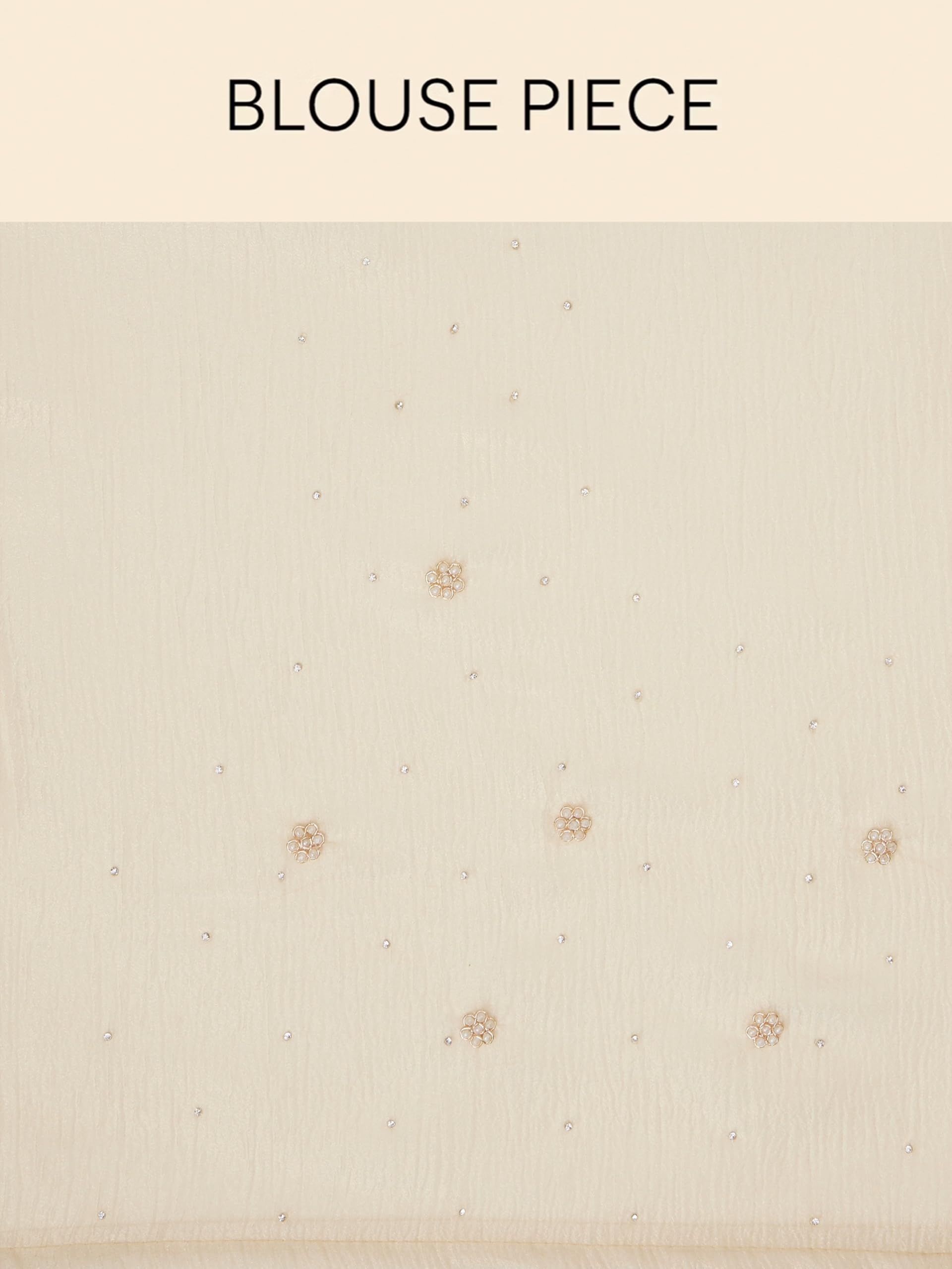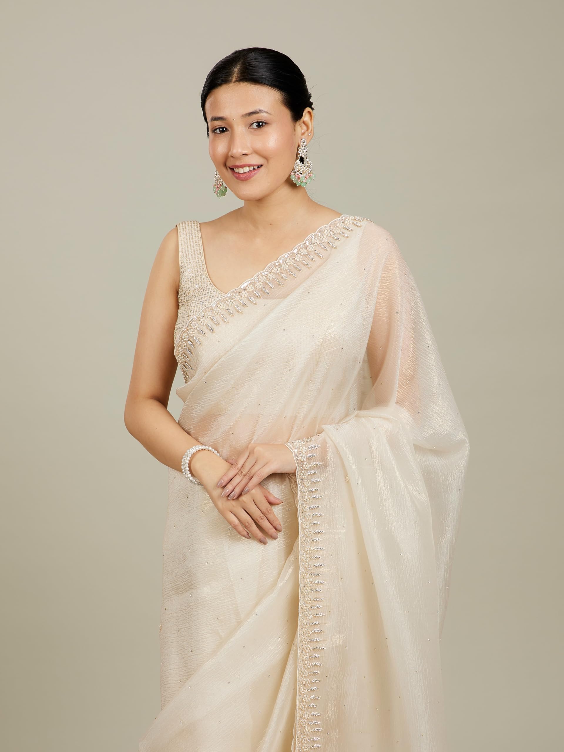 MOHEY Women's Chinon Hand Embroidered & Sequinned Saree(Cream)