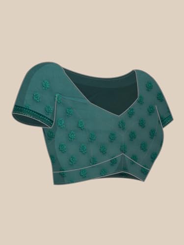 MOHEY Women's Georgette Embroidered Rhinestone Embellished Saree(Green)