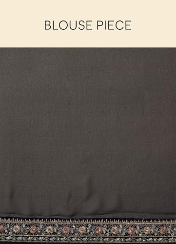 MOHEY Women's Georgette Paisley Embroidered Saree with Blouse Piece(Indigo Blue)
