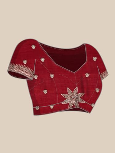 MOHEY Women's Maroon Art Silk Embroidered|Stone Work Saree (Maroon)