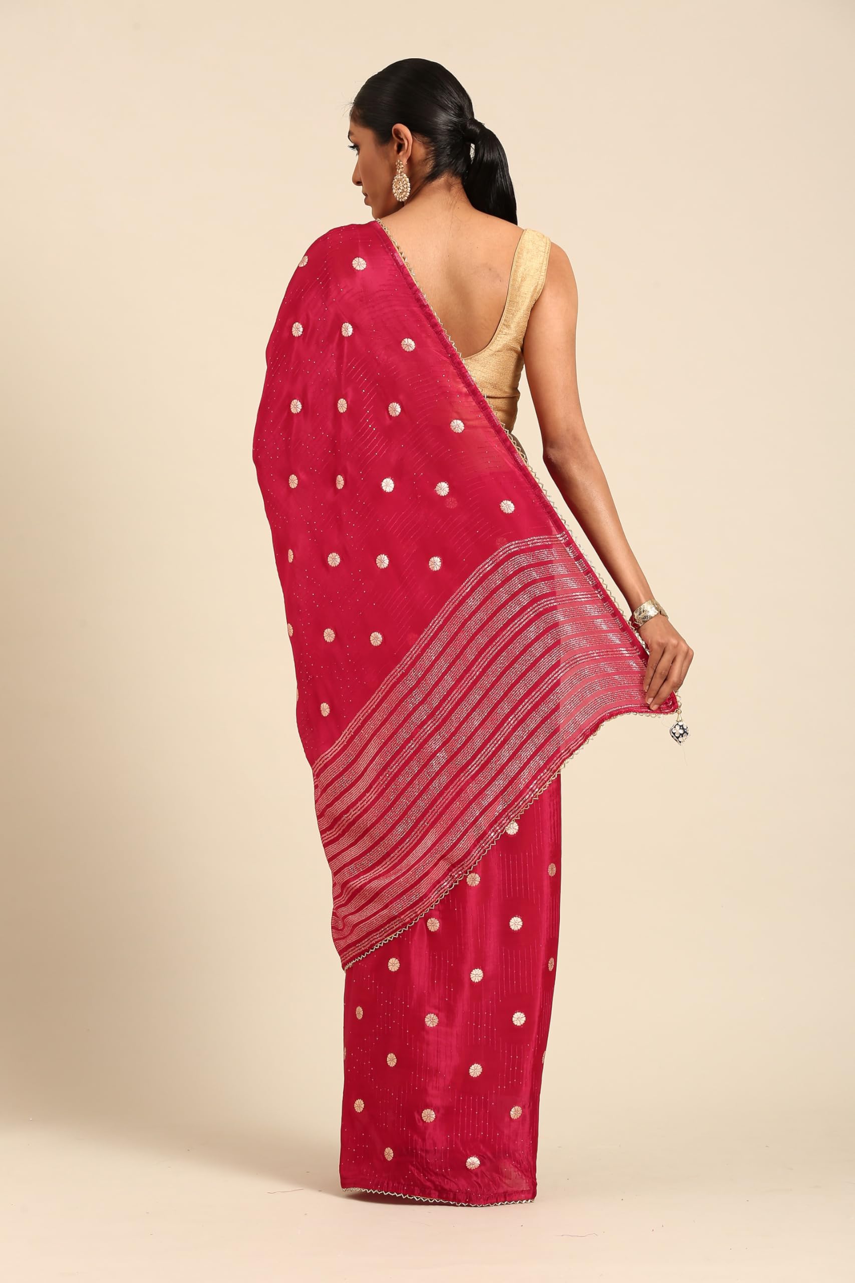 MOHEY Women's Rani Art Silk Stone Work| Zari Weave Saree (RANI)