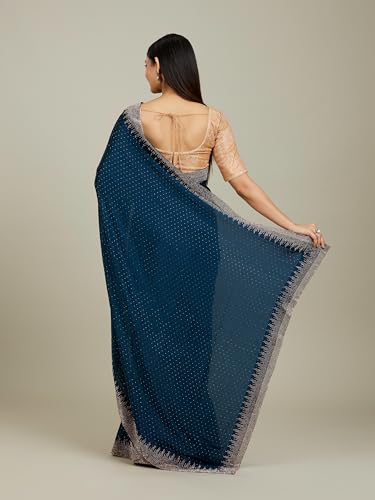 MOHEY Women's Satin Stone Work Saree(Teal Green)
