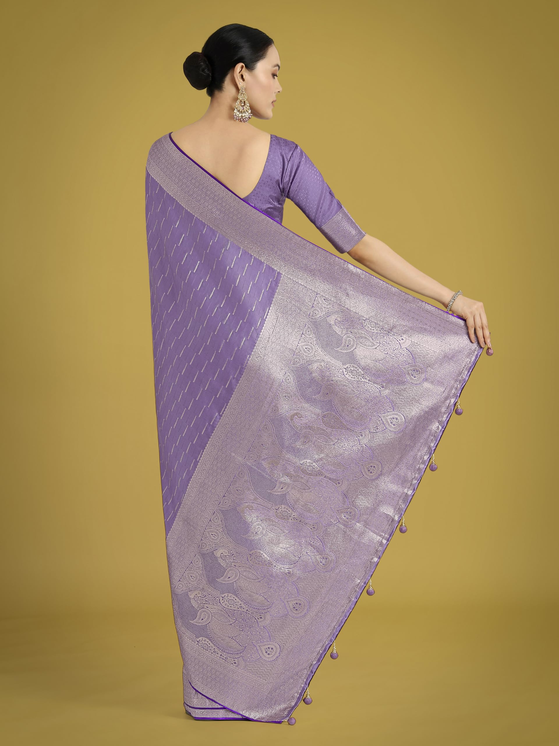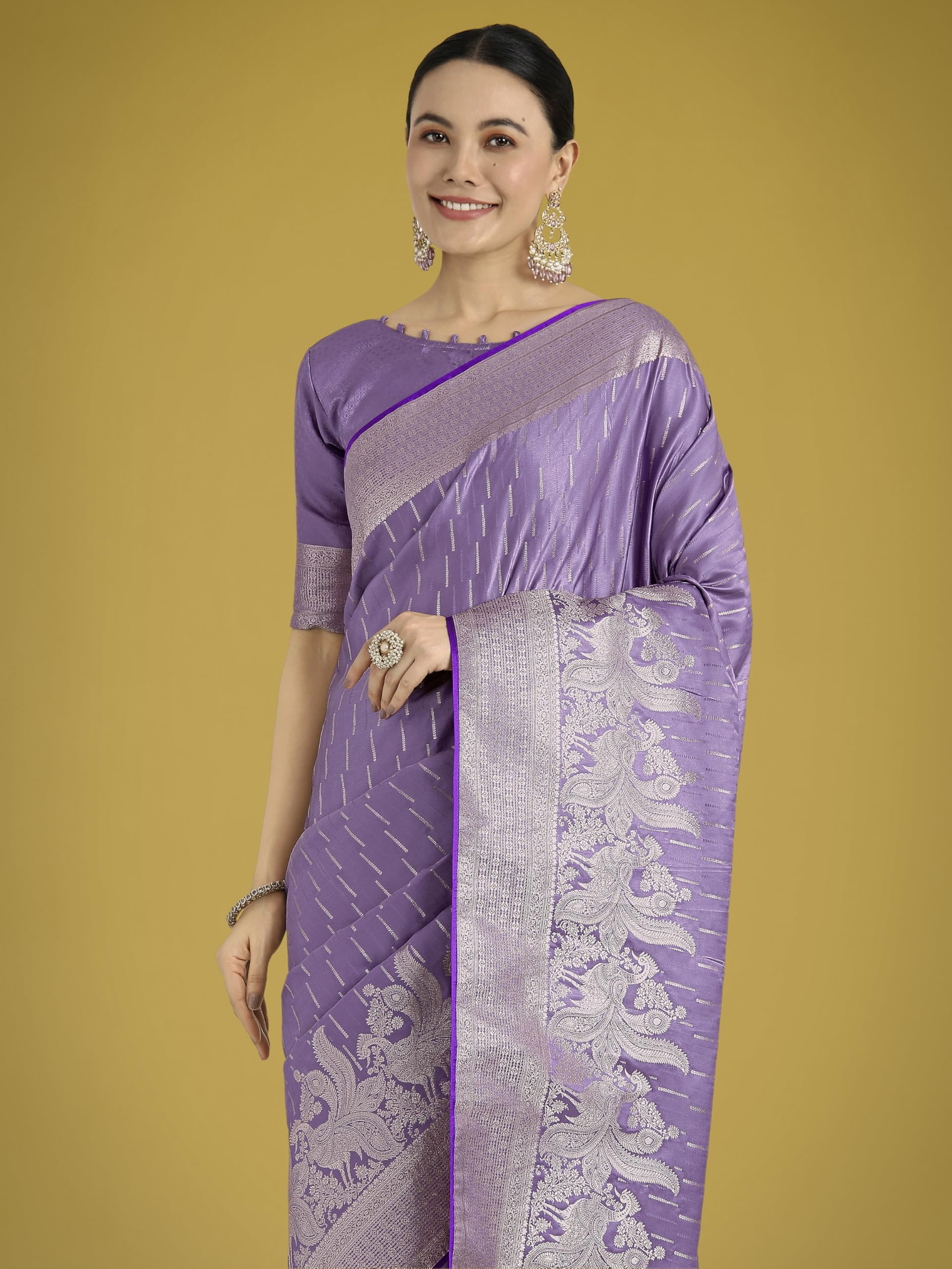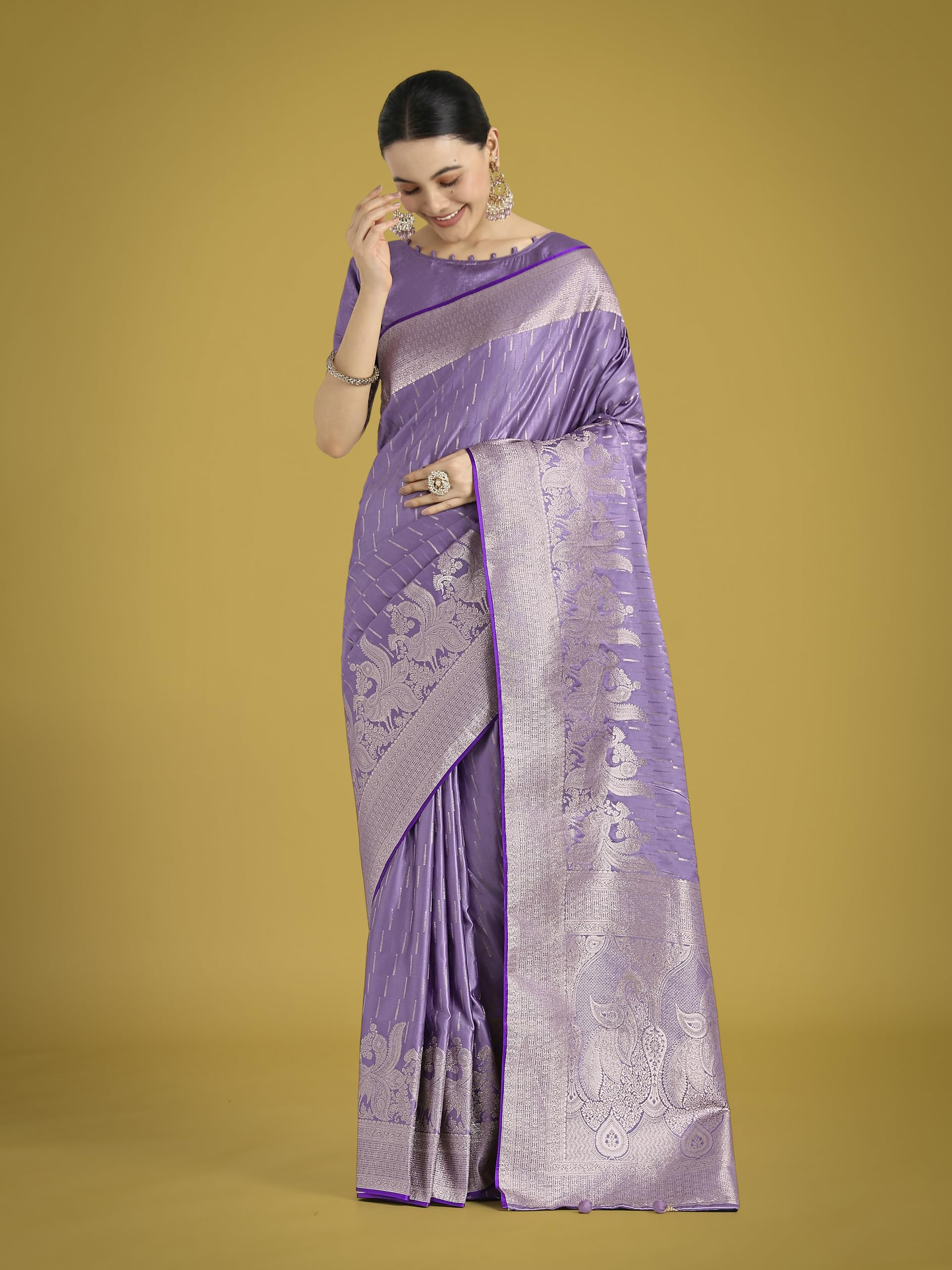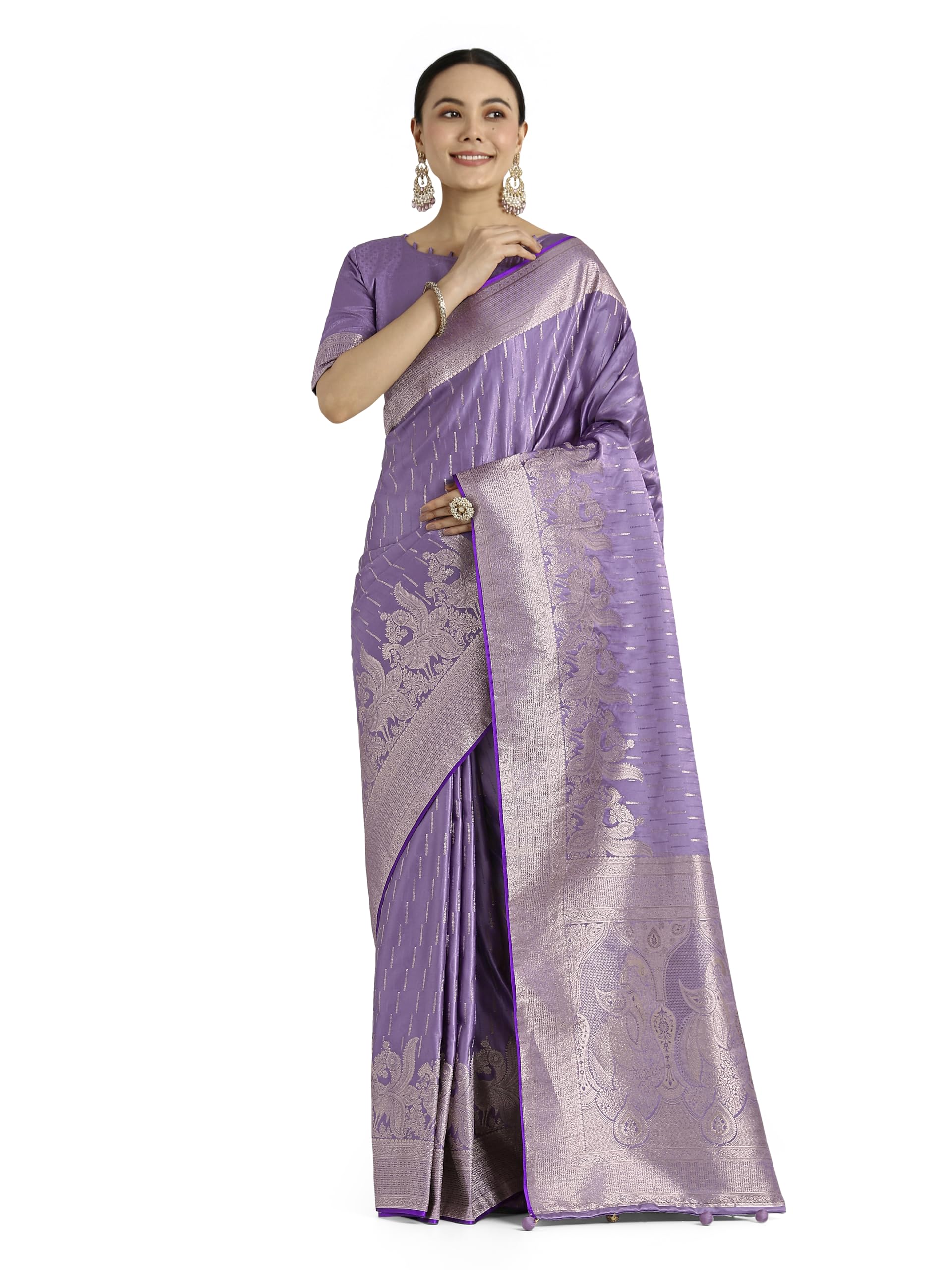 Monjolika Fashion Women Divine Dusty Lavender Zari Weaving Banarasi Satin Silk Trendy Saree For Festival Wear With Bewitching Blouse Piece (13300_Color) (Dusty Lavender)