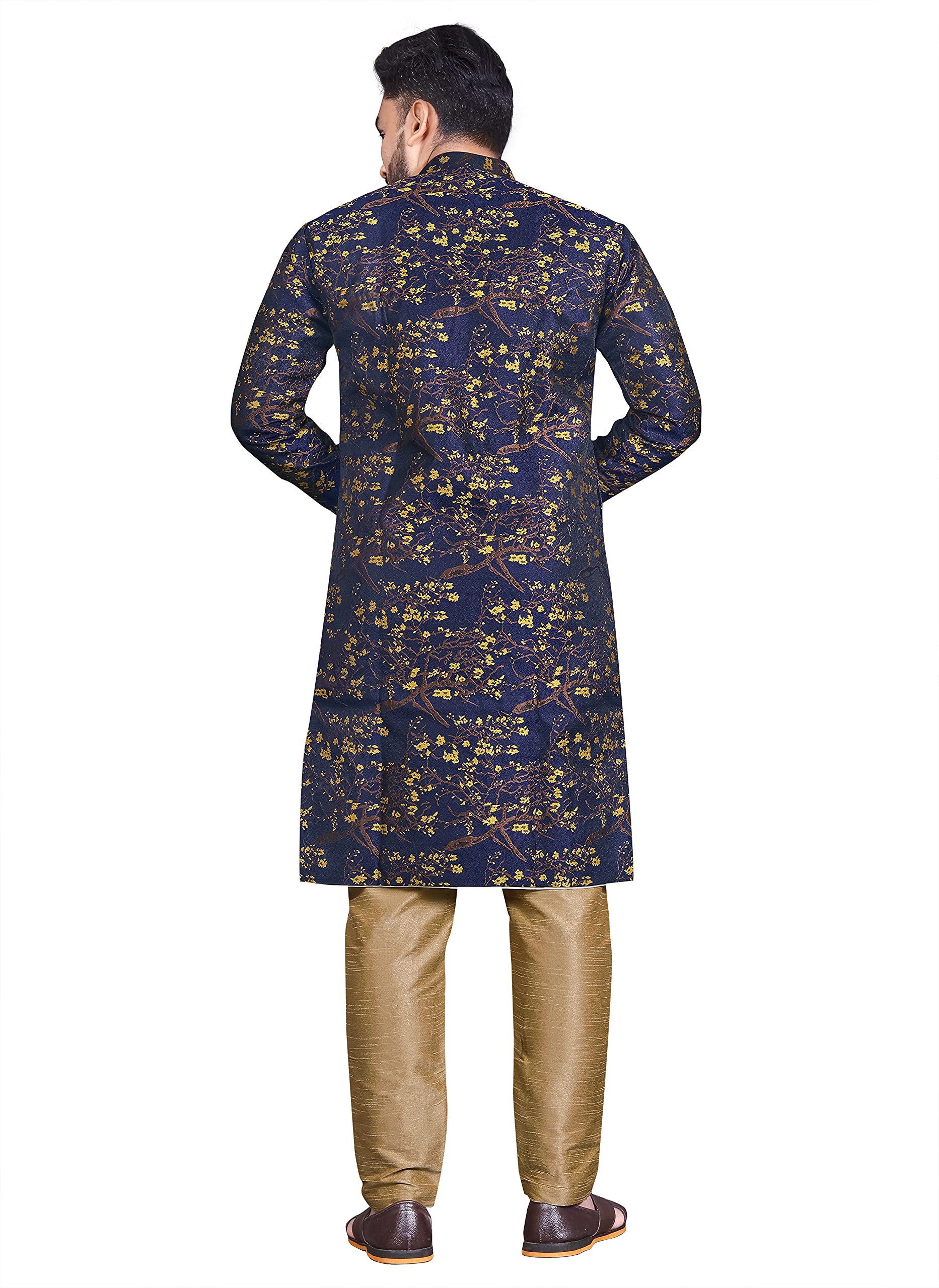 N.B.F Fashion Cotton Mens Casual Style Ethnic Wear Indo Western Set (Xx-Large, Royal Blue Yellow)