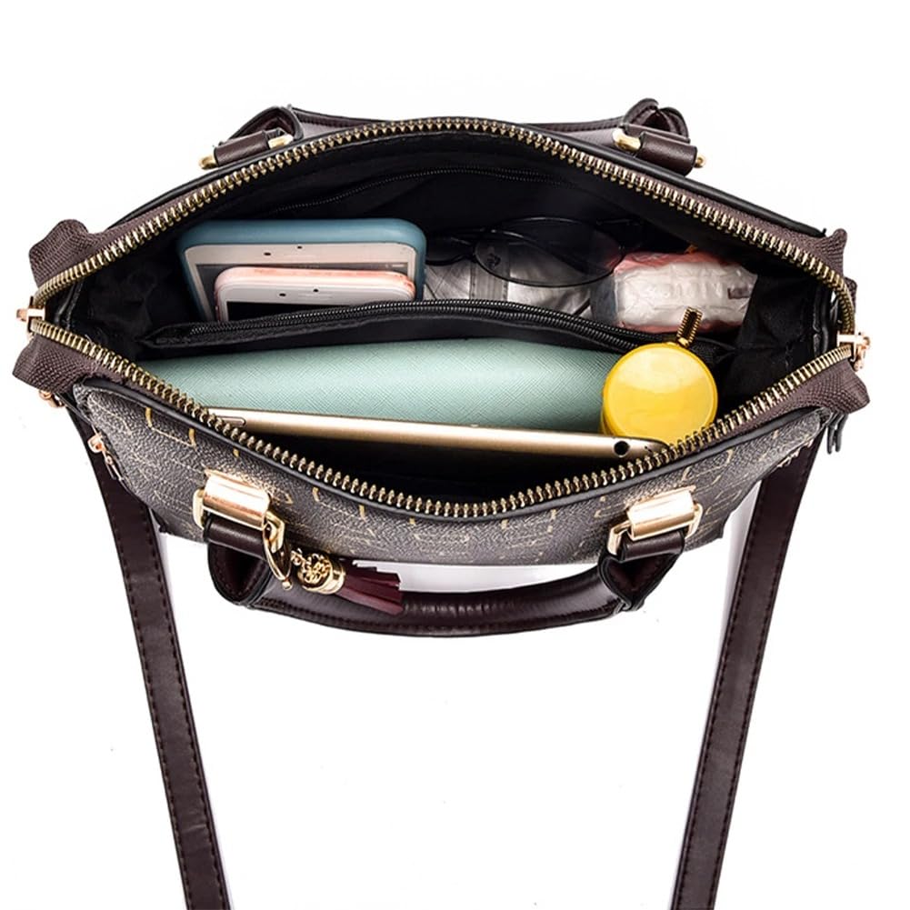 • size of HandBag Size - 24 x 13 x 23 cm, Material: High-quality Pu, Artificial leather is used to make this ladies; fashion bag. The colour is vibrant and sparkly, and it feels cosy. 3 Main compartments and 1 inner pocekt. Fashion Handbags Tote Purse Top Handle Shoulder Bag are stylish, innovativ, and lovely. ideal for carrying along and touring.
