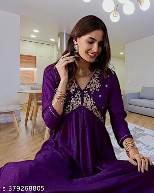 New Trending | Best kurta sets | Premium Gold | Color Pruple | Anarkali kurti for women | Embroidered Dress | state Kurta | Vichitra Silk | Aliyacut kurti For Women |