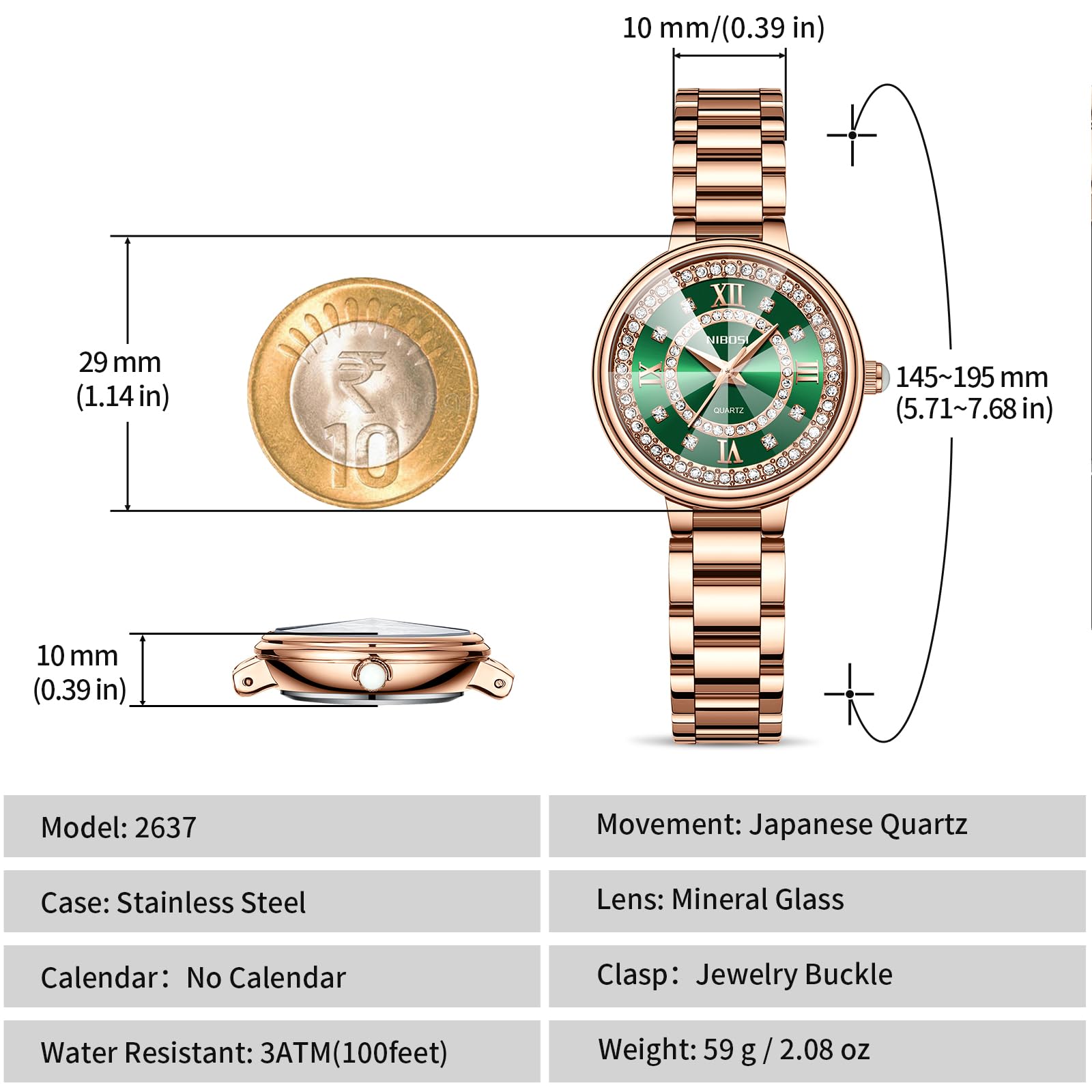 NIBOSI Women Watches Rose Gold Stainless Steel Analog Quartz Luxury Diamond Latest Watch for Ladies Luxury Stylish Waterproof (Rose Green)