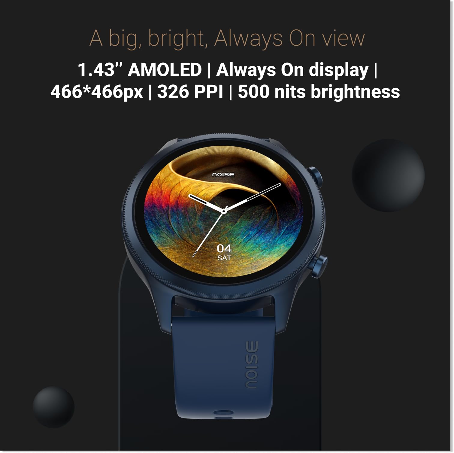 Noise Evolve 3 1.43" AMOLED Always on Display, BT Calling, Round Dial, Metallic Design Smart Watch for Man & Woman, Smart Gesture Control, 100 Sports Modes (Space Blue)