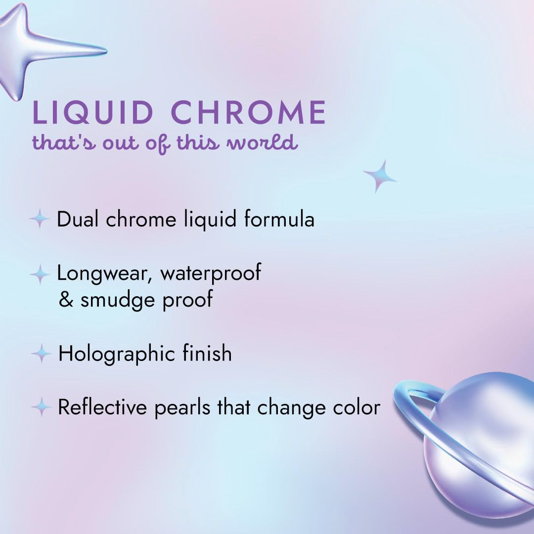• Dual chrome liquid formula Longwear, waterproof & smudge-proof Holographic finish Color-changing magic 6 Color Changing Shades: