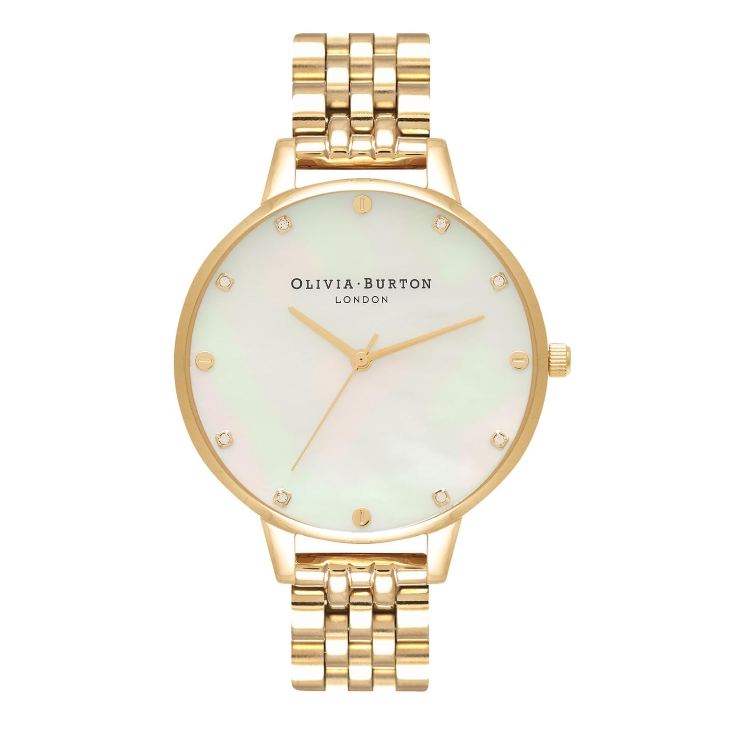 Olivia burton Classics Qtz Basic Slim White Mother of Pearl Round Dial Women's Watch|Ionic Plated Gold Steel Material|Gold Color Band - OB16SE13