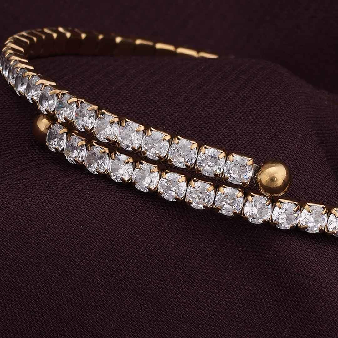 - Base Metal : Stainless Steel Plating : Gold Plated Bracelet Size : Onesize Weight :4 gms Bracelet Type : Sleek/ Dainty Bracelets Key Features : Water Proof, Anti Tarnish, Skin Friendly, Light Weight 1 Year Warranty on Color and Plating*. *T&C apply, detailed T&C available on our website.