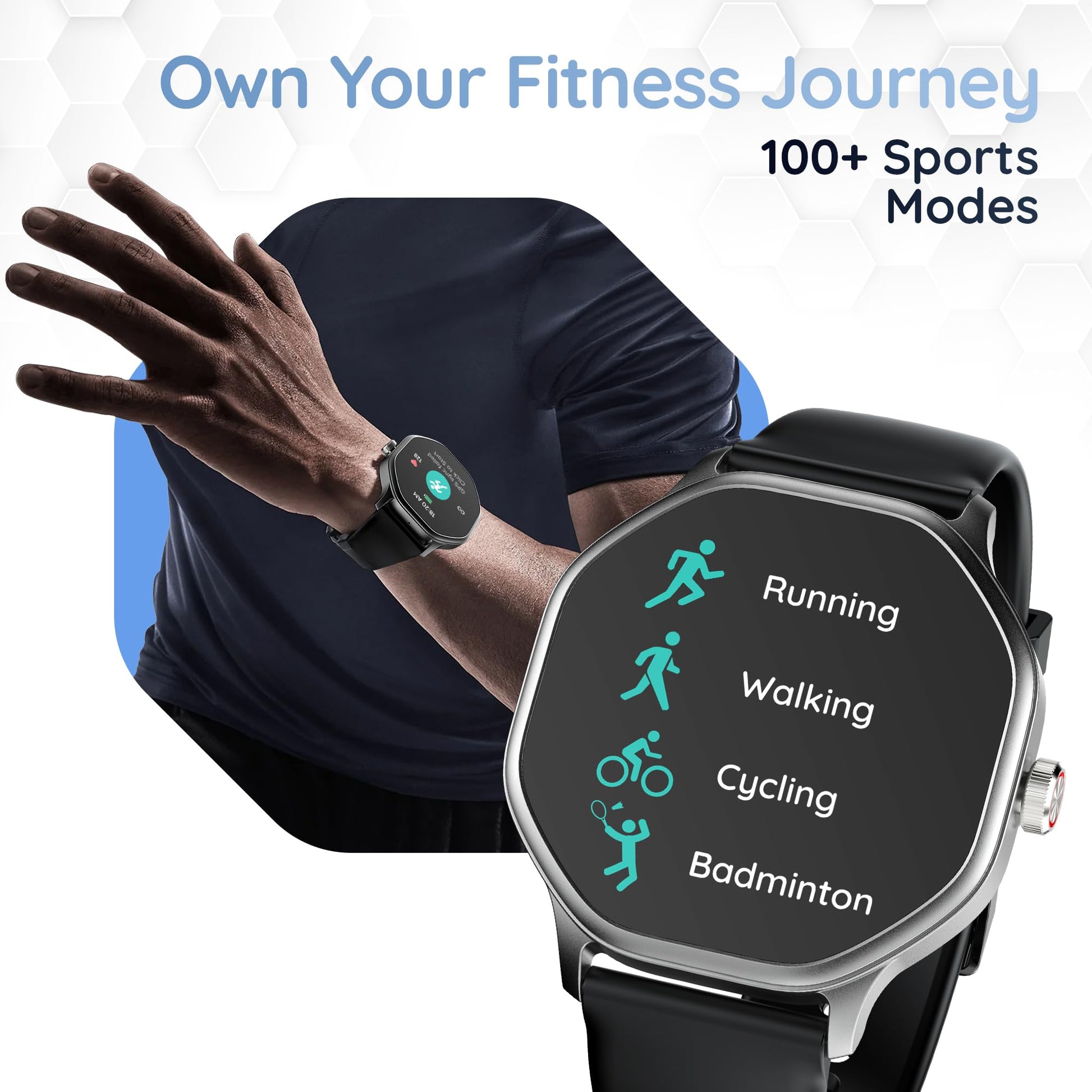 • 1.39" HD Display, Bluetooth Calling, Heart Rate Monitoring, SpO2 Monitoring, Multiple Watch Faces, Full Touch Screen, Multi Sports Modes, Sleep Monitoring, Alarm & Notification, DIY Watch Faces, In-Built Games, World Clock