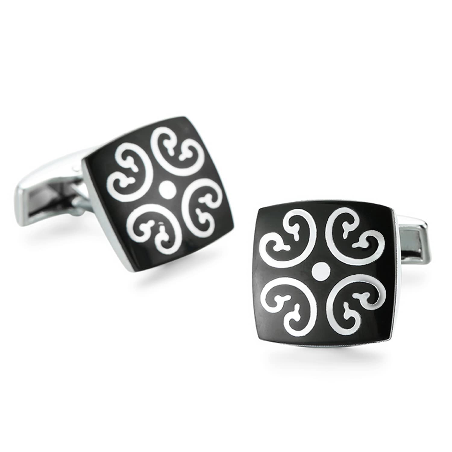 Peora Black Silver Two Tone Cufflinks Set Stylish Accessories for Men & Boys Wedding Business Gift (PX9CL100)
