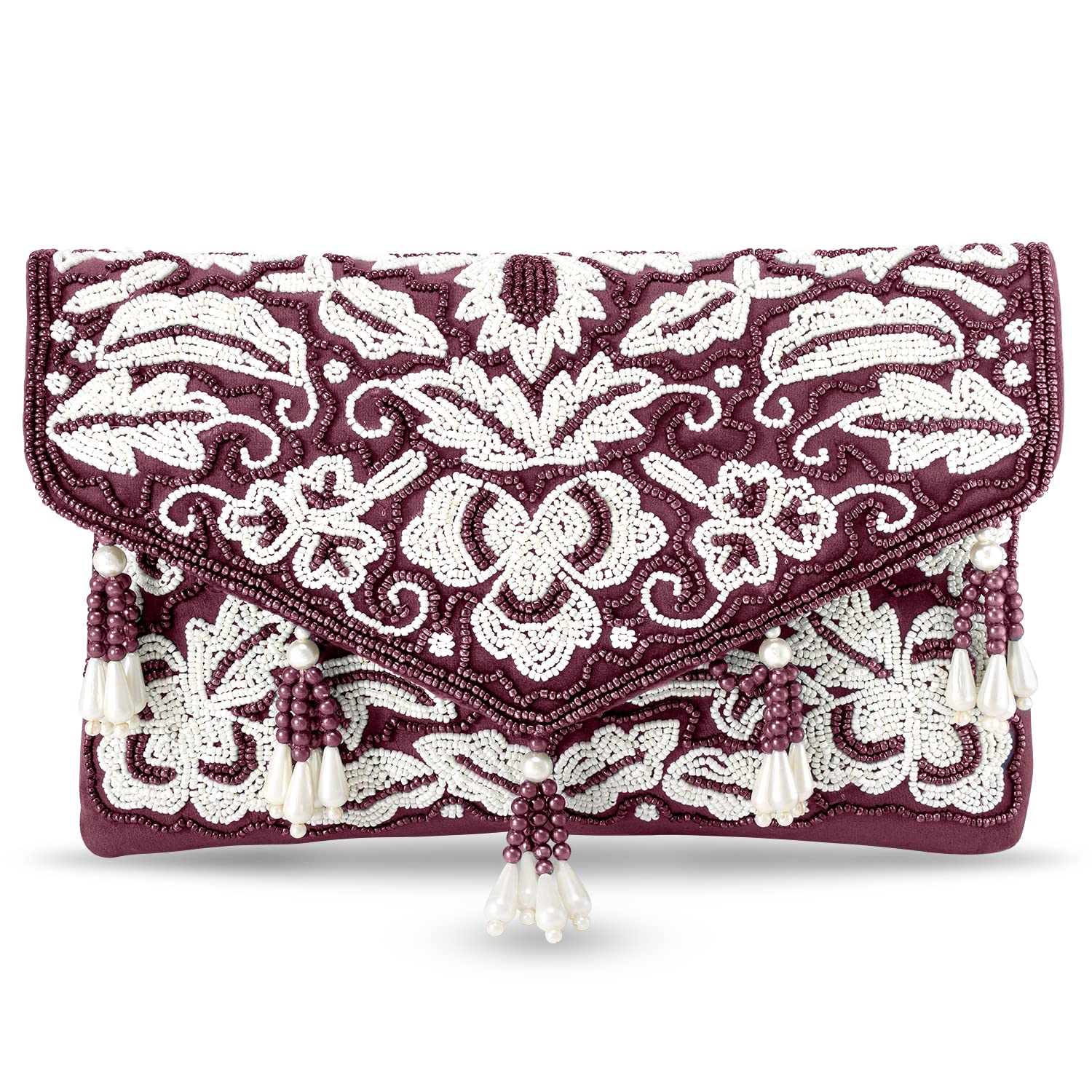 Peora Clutch Purses for Women Wedding Handmade Evening Handbags Party Bridal Clutch (Maroon)