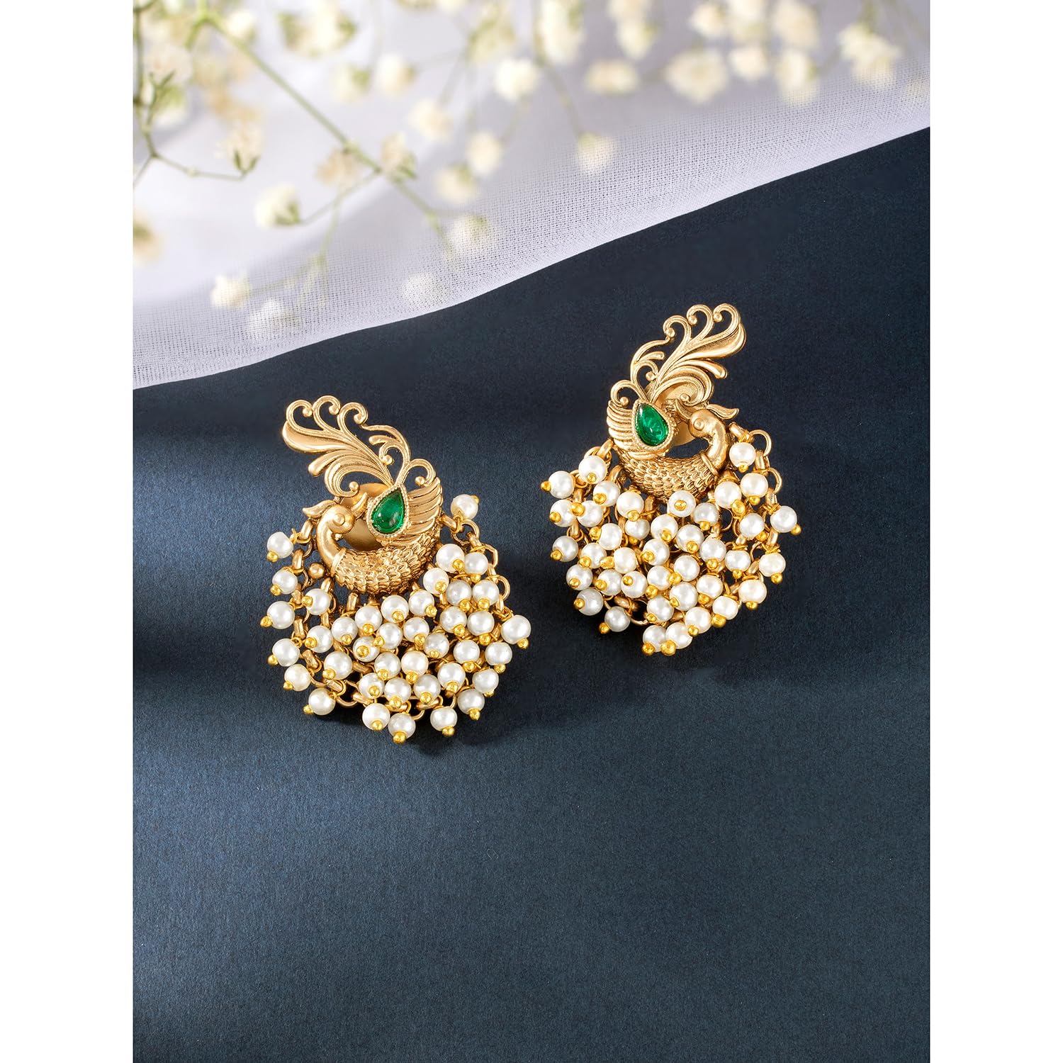 Peora Gold Plated Beads Studded Drop & Dangle Earrings Jewellery Gift for Girls & Women