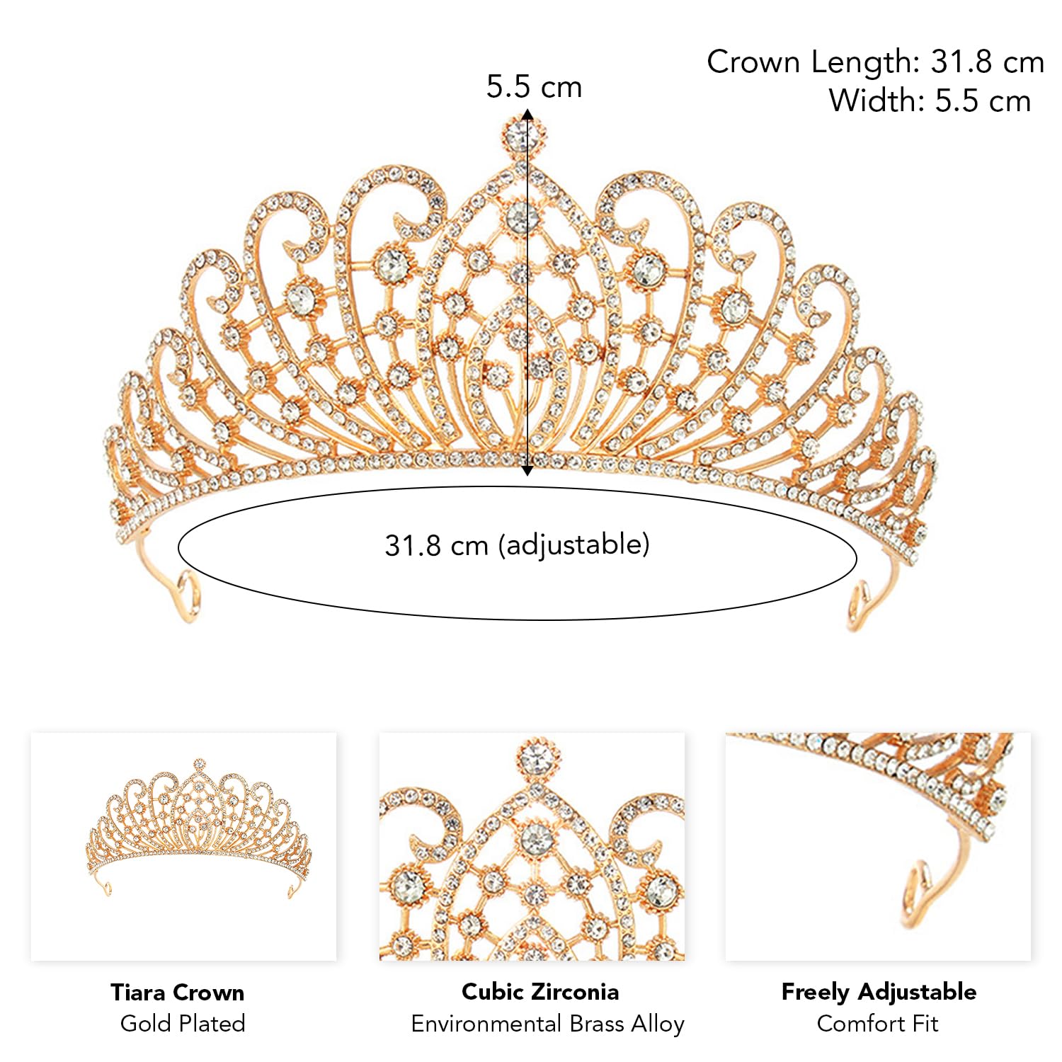 - DIMENSIONS: Tiara Length: 13.5 cm (Adjustable) x Width: 5.5 cm; Weight: 62 grams