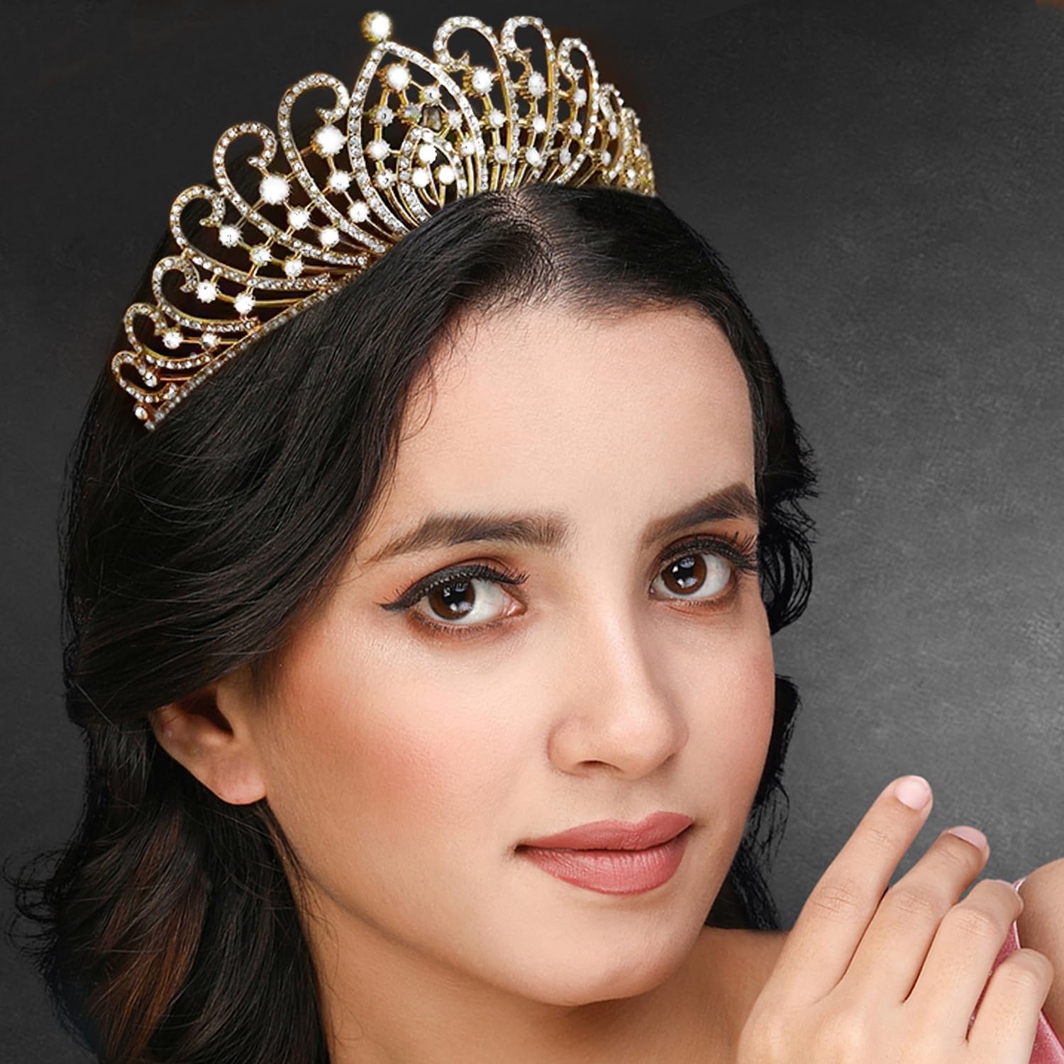 Peora Gold Plated Cubic Zirconia Studded Princess Tiara Crown for Girls & Women Birthday Hair Accessories