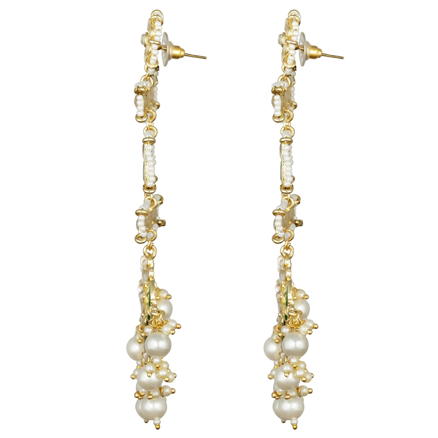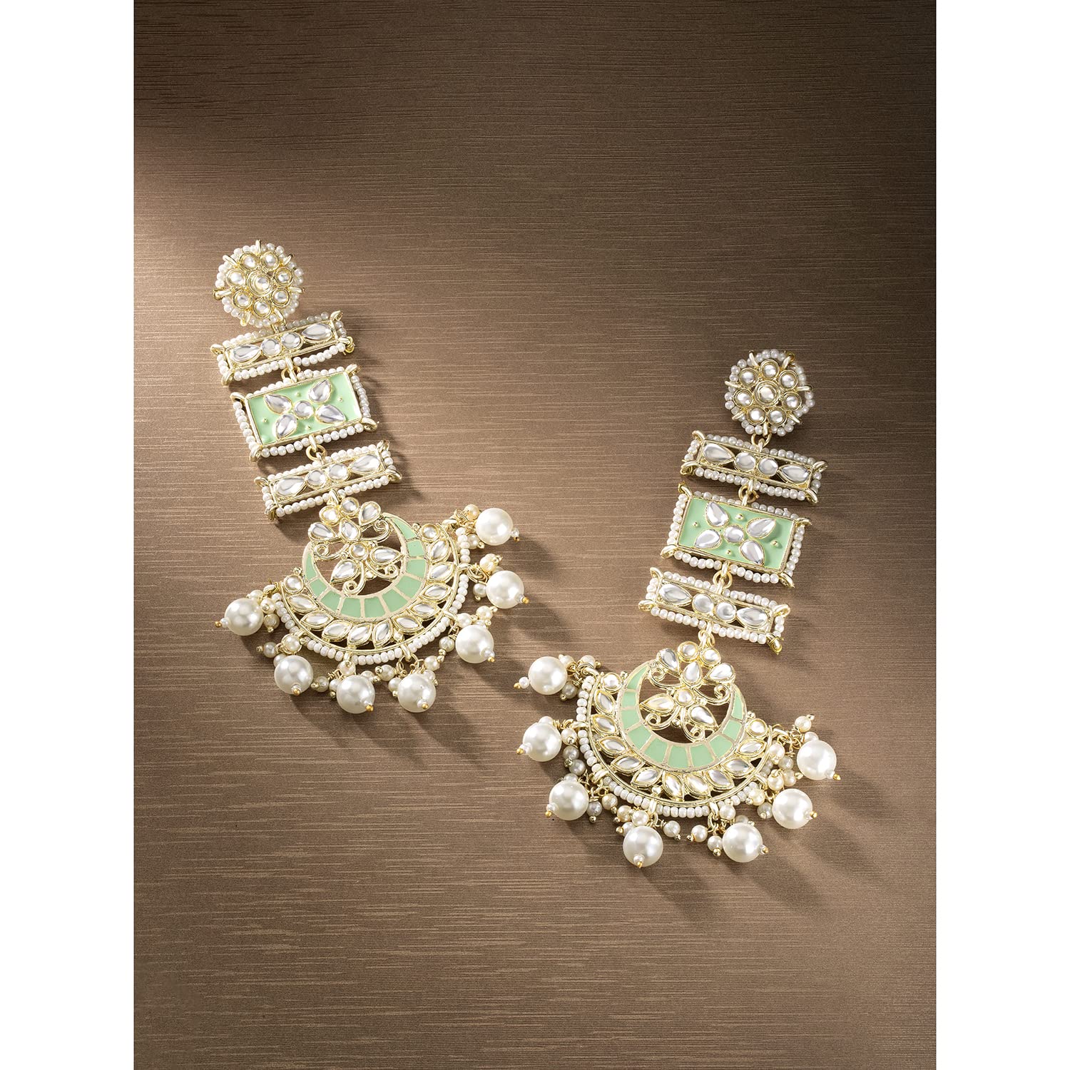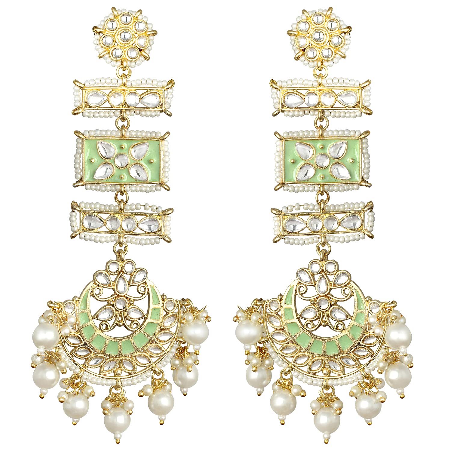 Peora Gold Plated Kundan Pearl Mint Meenakari Long Chandbali Dangle Earrings for Women