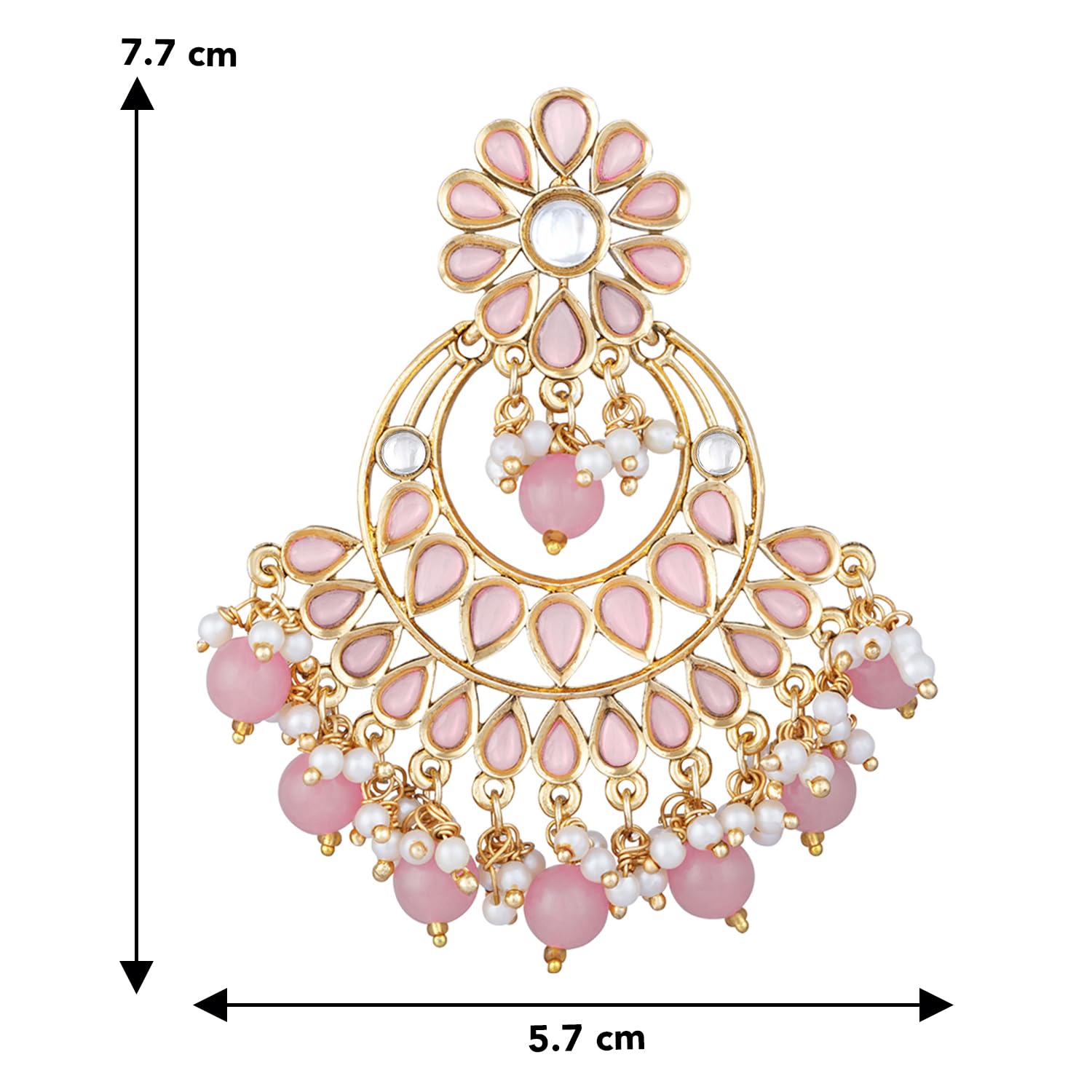 Peora Gold Plated Studded Chandbali Dangle Fashion Earrings for Women (Pink)