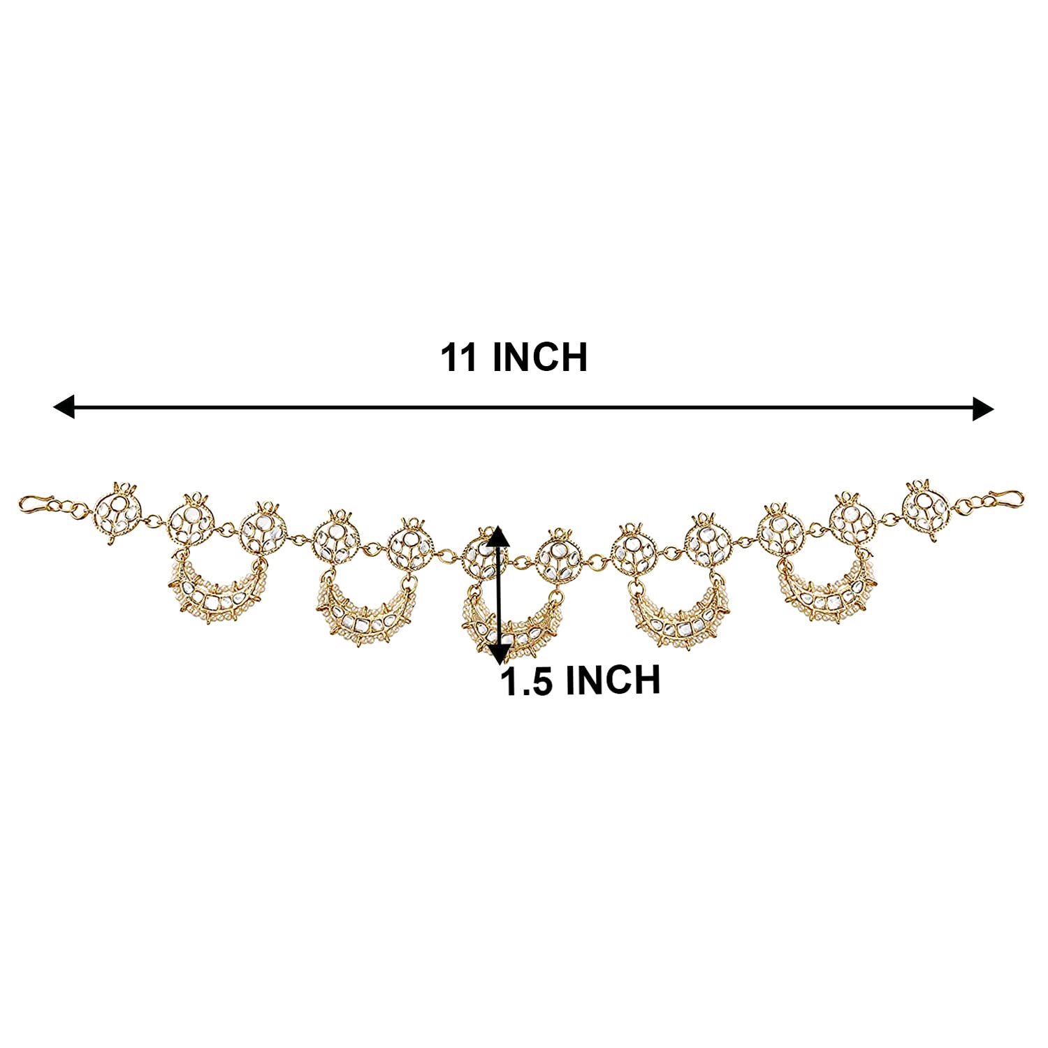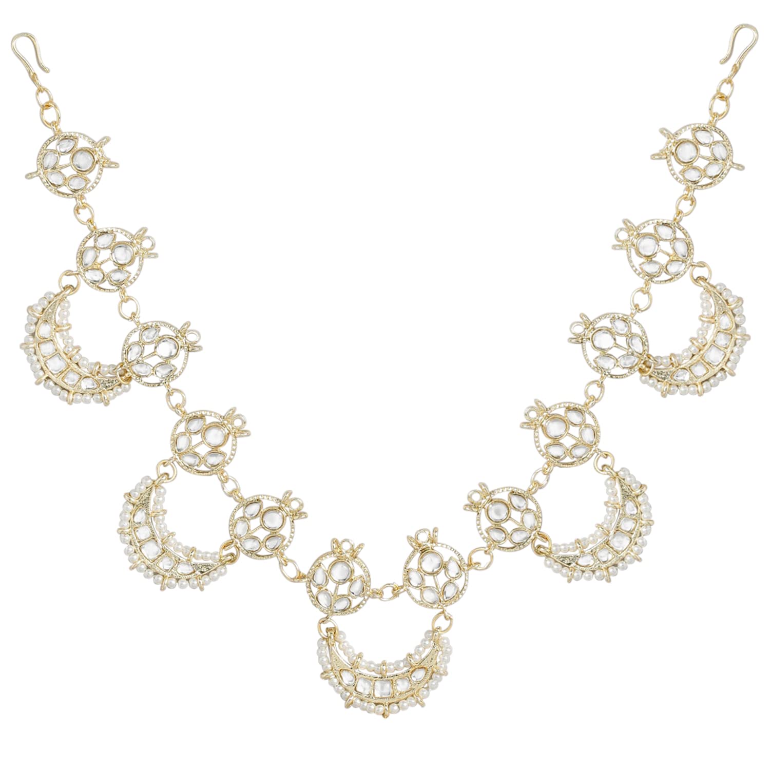 Peora Gold Plated Traditional Floral Kundan Pearl Studded Rajasthani Sheeshpatti Sheeshphool Mathapatti Hair Jewellery for Women