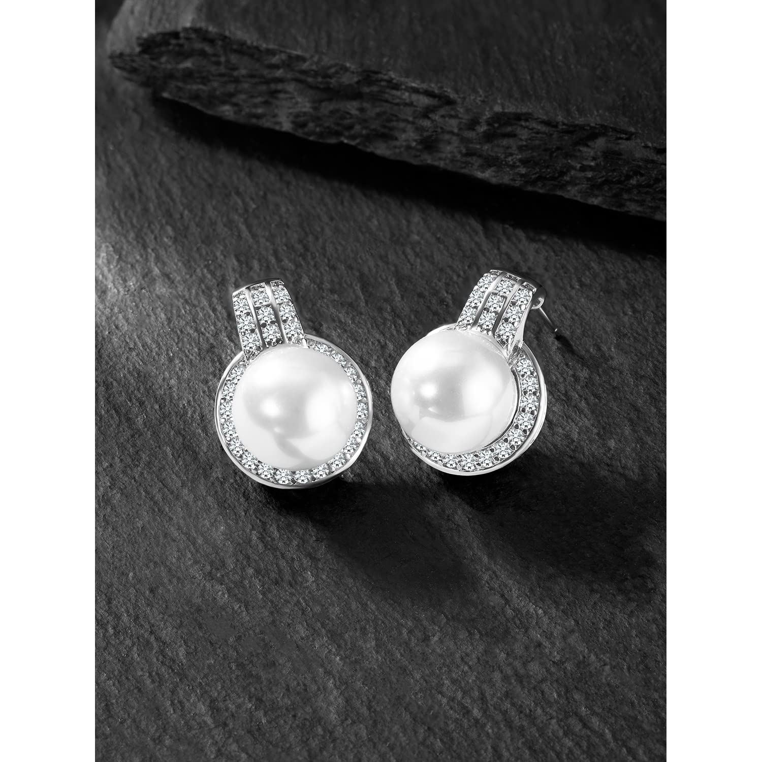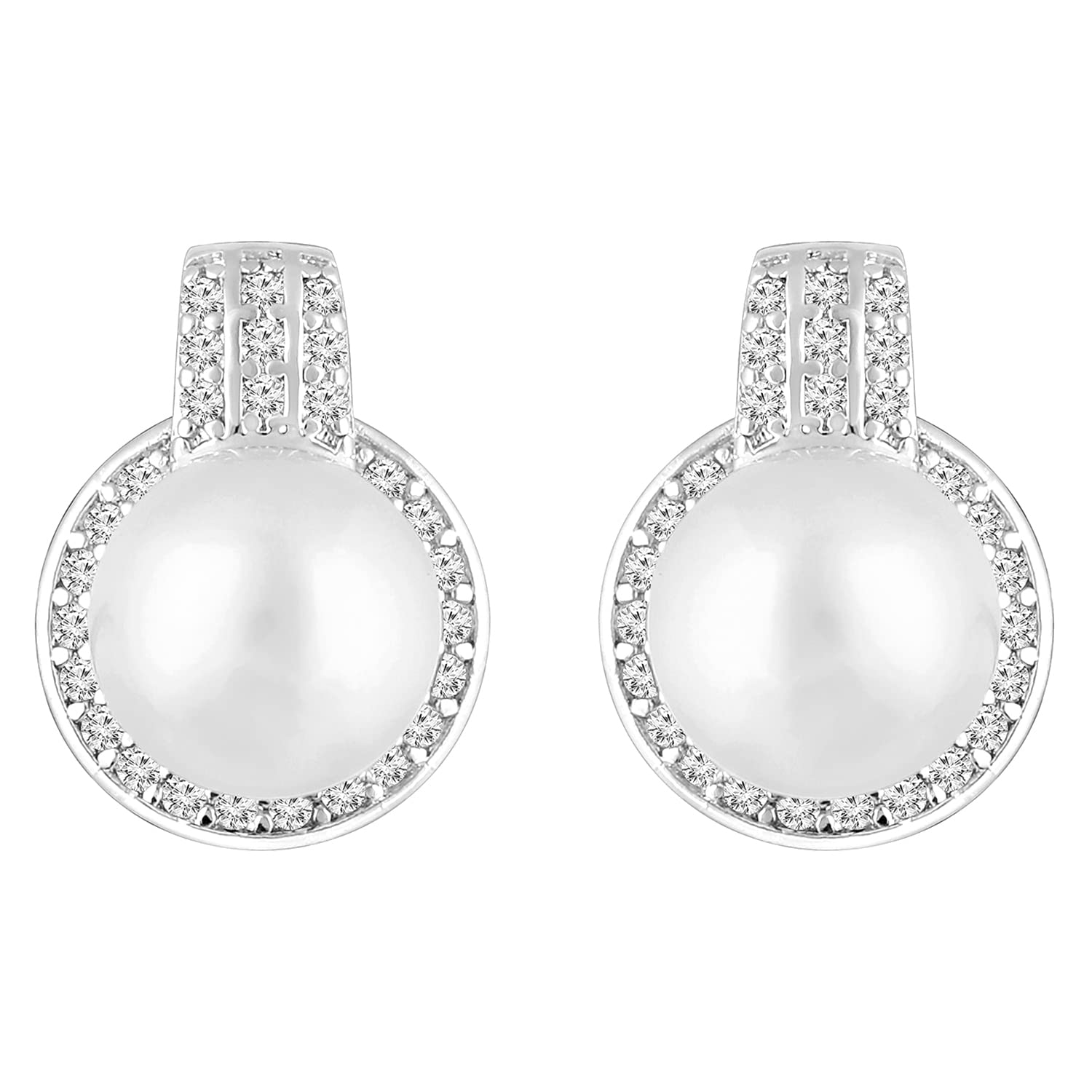 Peora Silver Plated Cubic Zirconia & Pearl Studded Hoop Earrings Stylish Fashion Jewellery Gift for Women & Girls