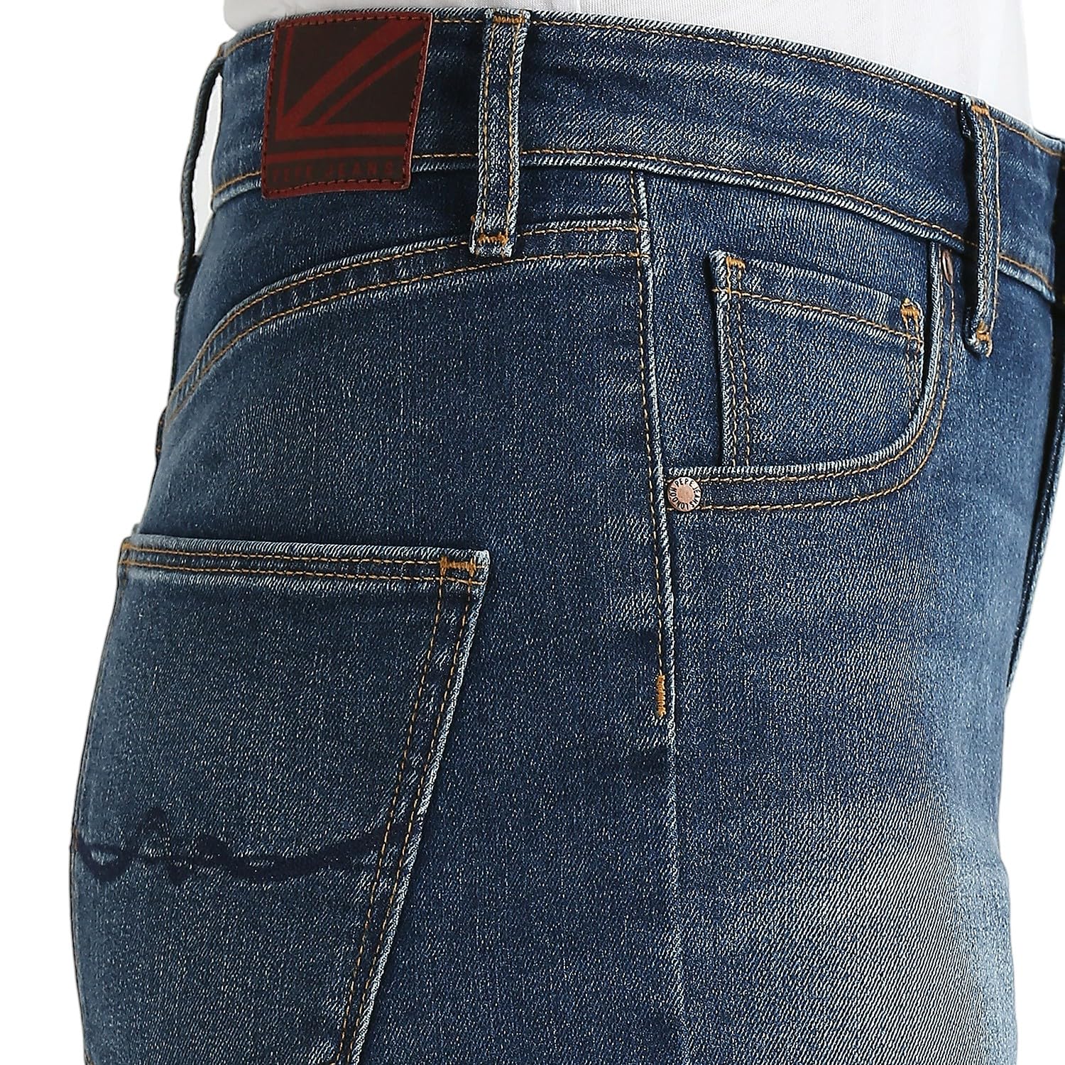 - High-waist frame for a flattering profile Relaxed fit for all-day movement Mild destruction look for urban edge Five pockets for daily essentials