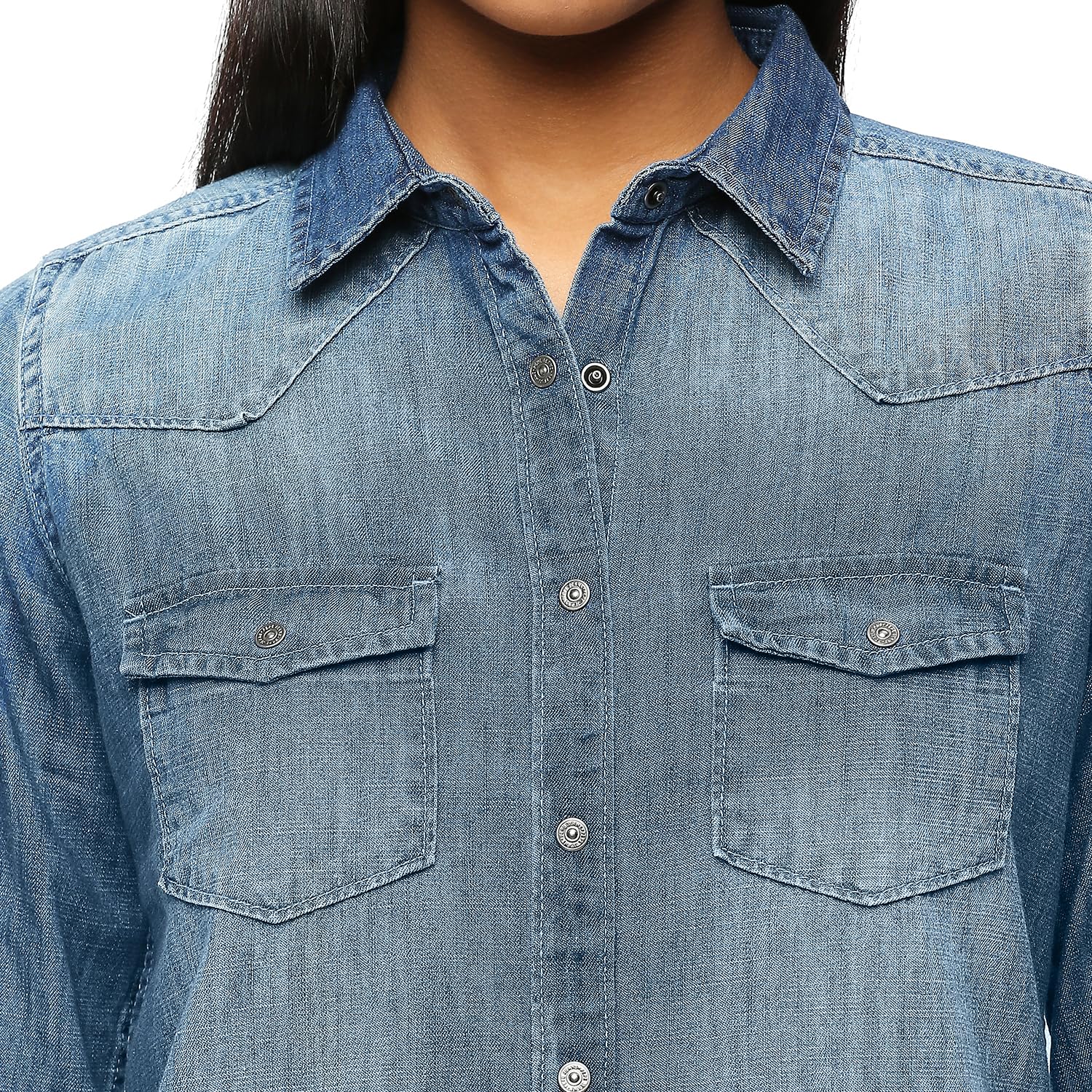 Pepe Jeans Women's Solid Regular Fit Shirt (PL304772CA0_Dark WASH_Mid Indigo Blue