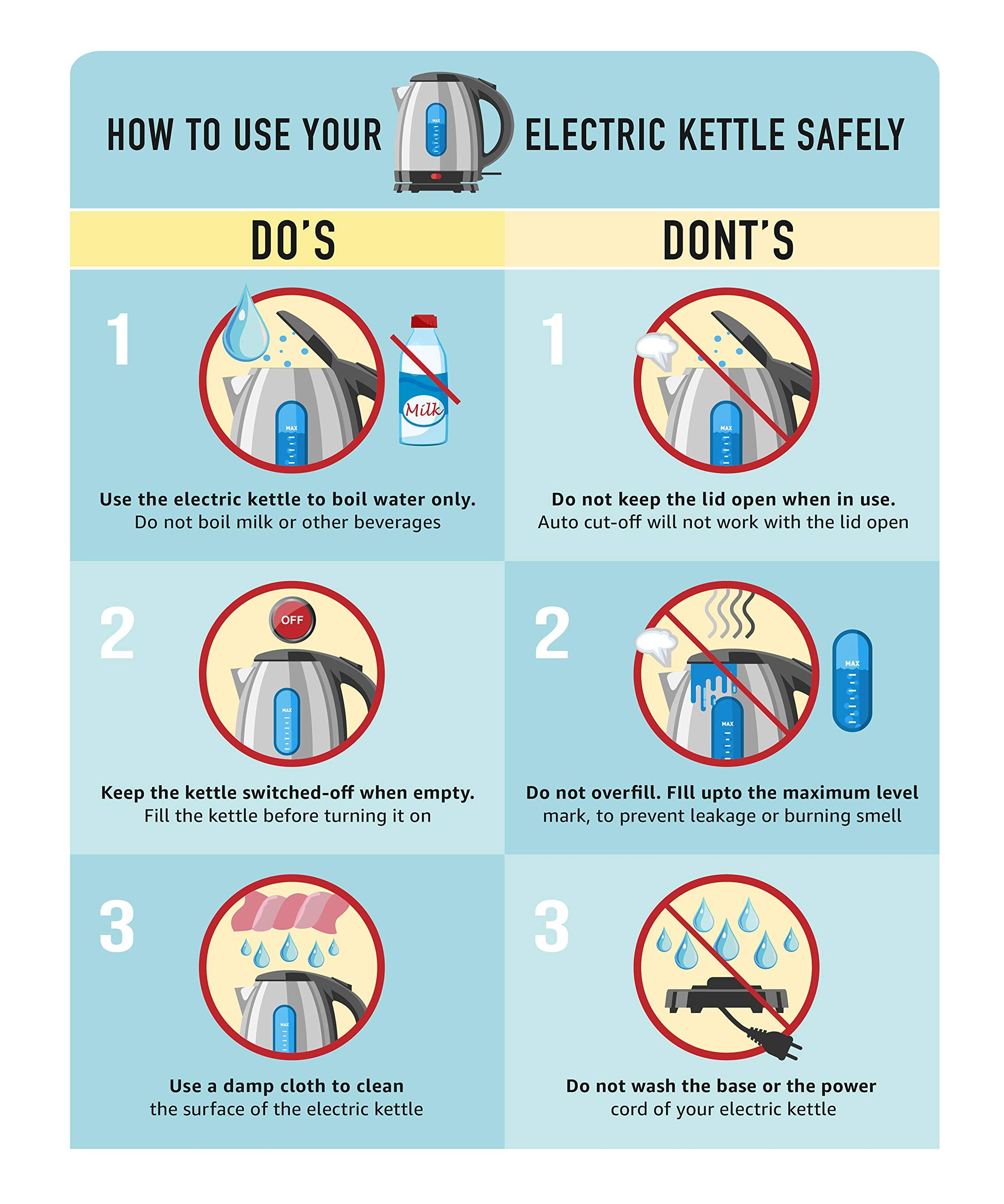 • Customer should not wash the base of the kettle