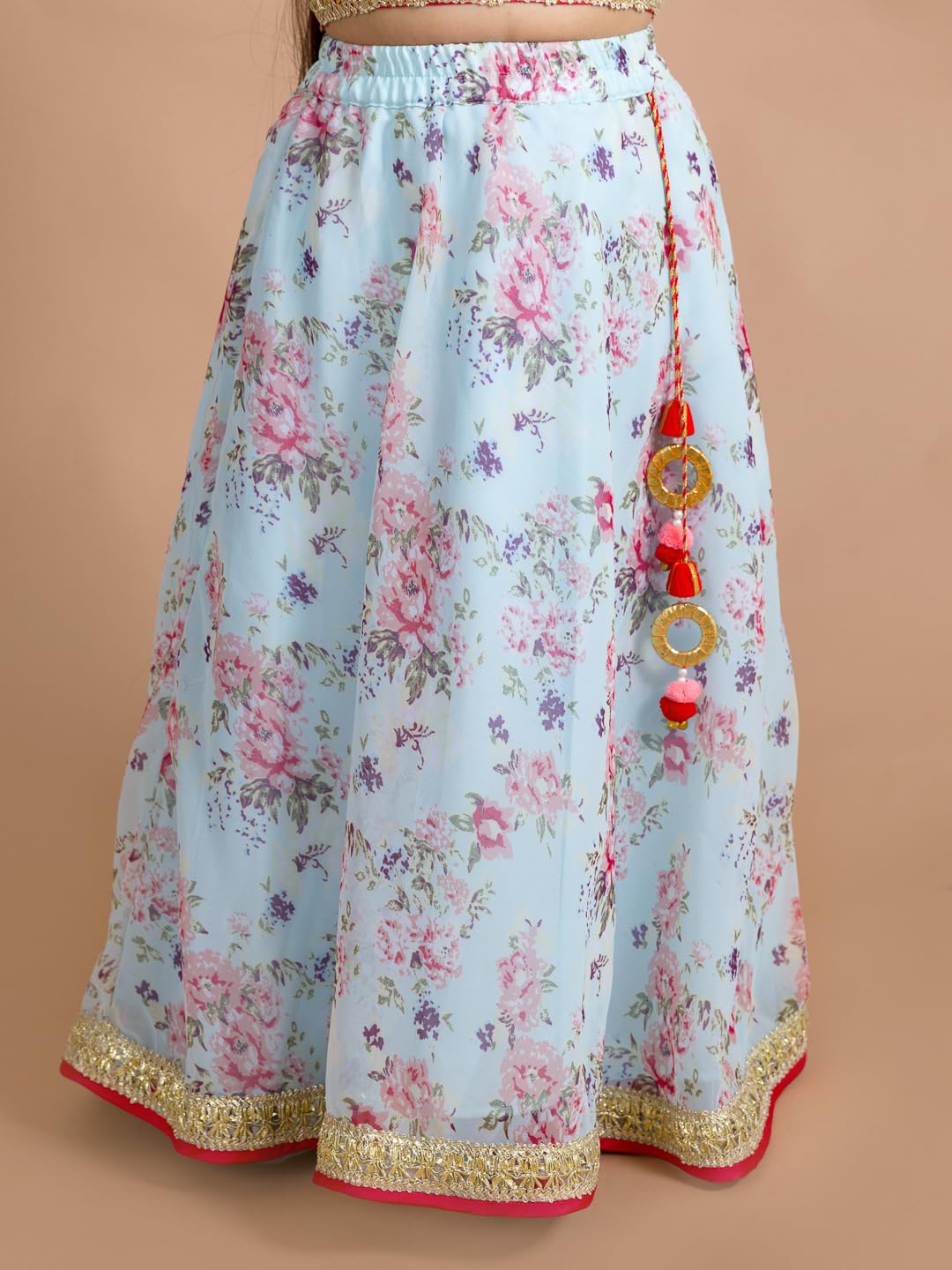 Pspeaches Girls Polyester Red Blue Floral Readymade Lehenga Choli Set (Red-7-8Y), 7-8 Years