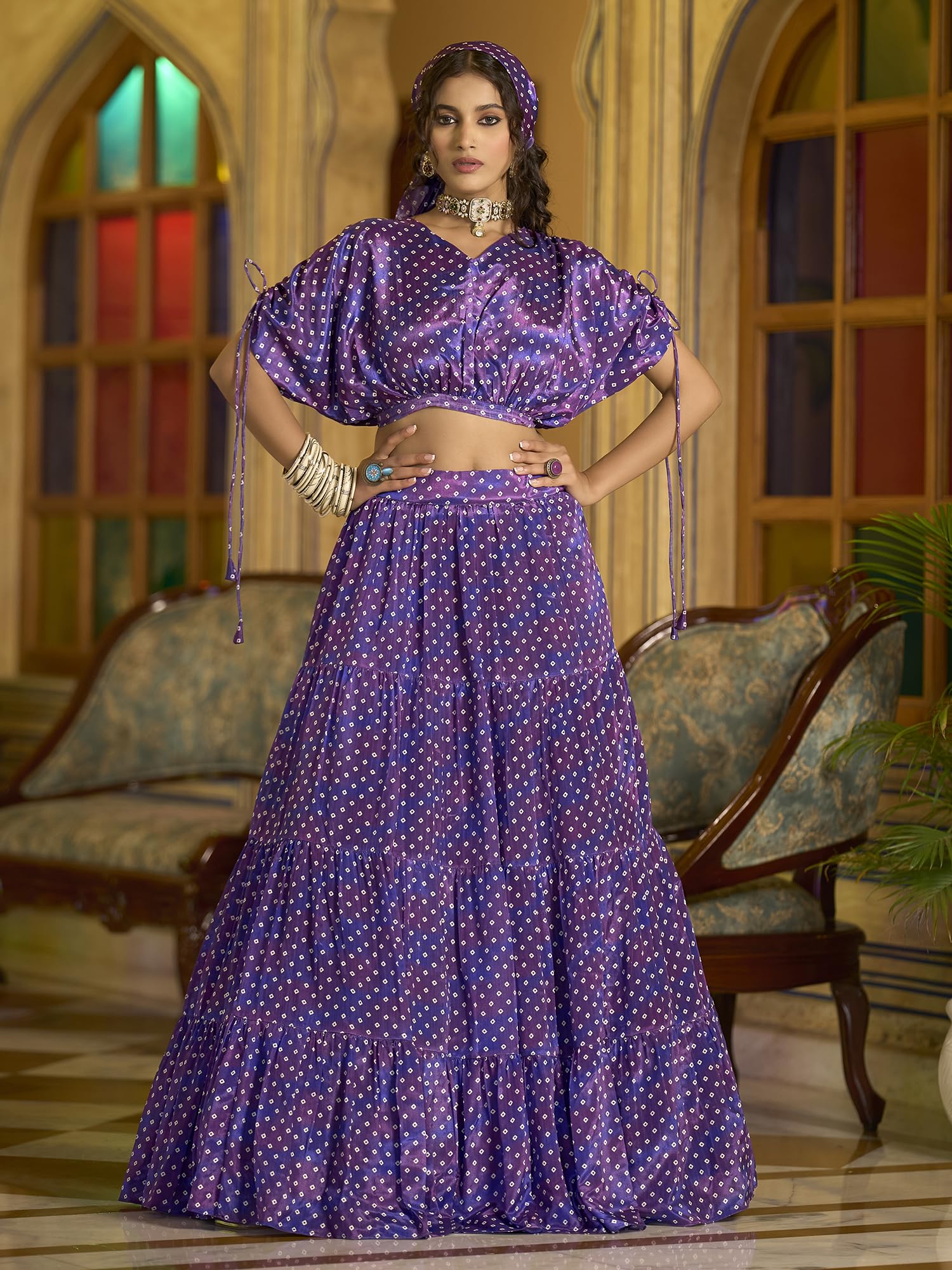 PURVAJA Women's Chinon/Art Silk Semi-Stitched Lehenga choli (Vivi-Purple_M)