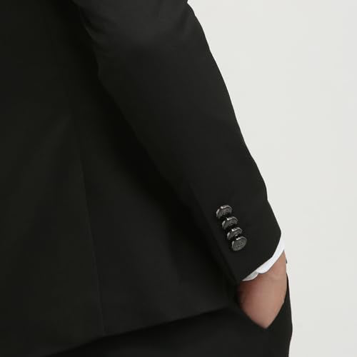 Raymond Men Regular Fit Solid Pattern Poly Viscose Elastane Blend Stand Collar Full Sleeve Ceremonial Jacket (Size: 44)-RIJI00123-K8 Black