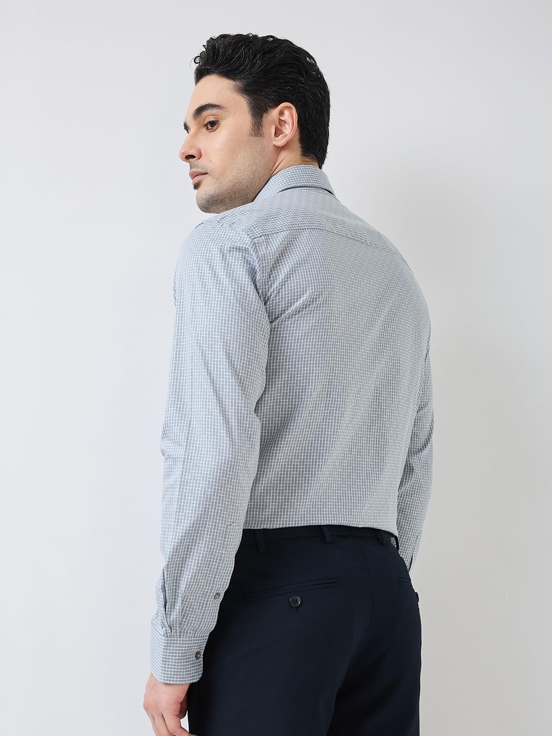 Raymond Men Regular Fit Structure Pattern Pure Cotton Semi Cutaway Collar Full Sleeve Formal Shirt (Size:42)-RMSX12849 Medium Grey