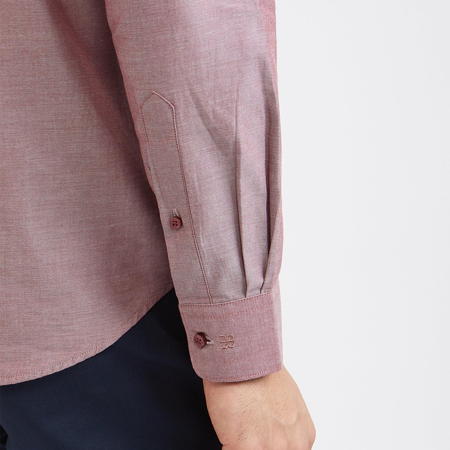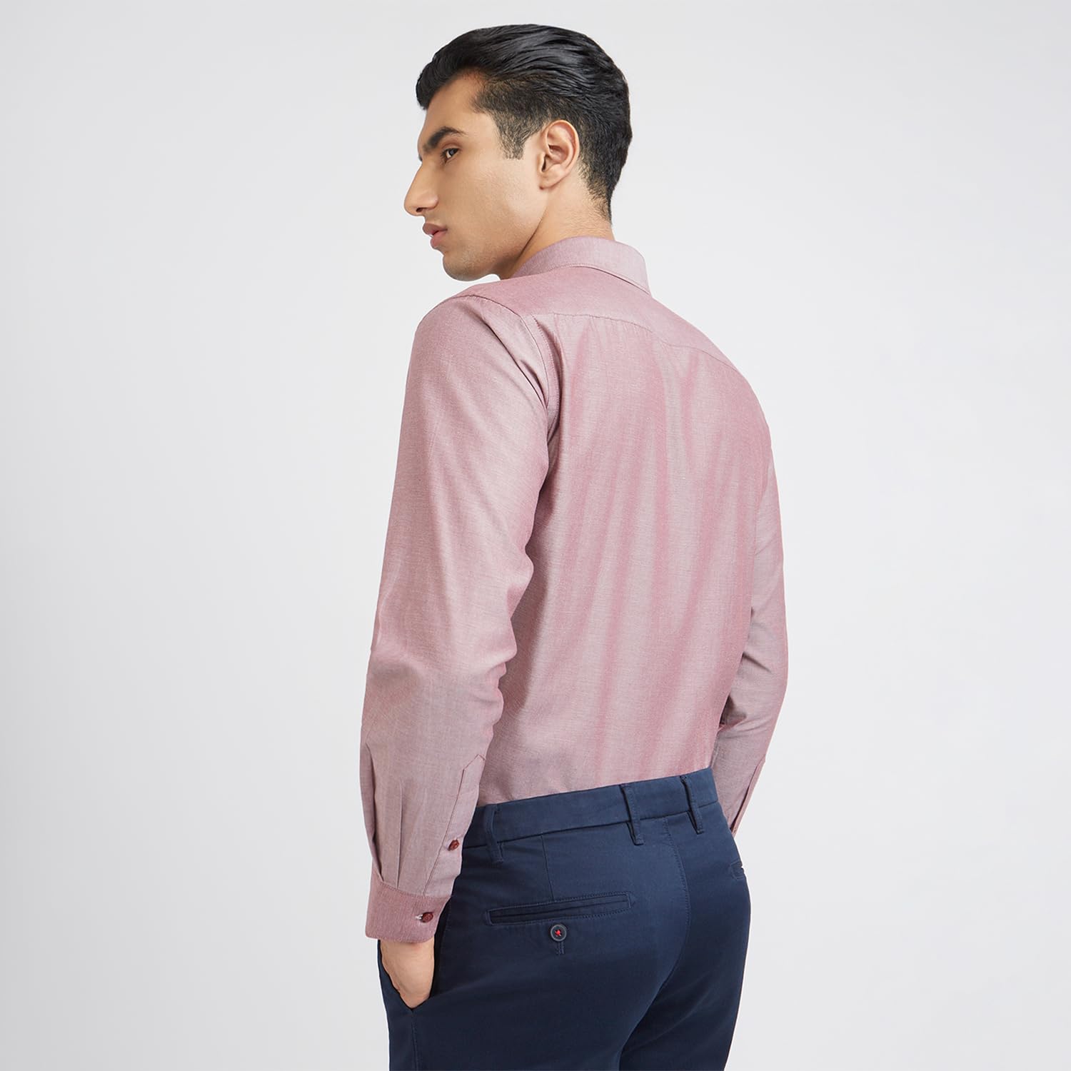 Raymond Men Slim Fit Solid Pattern Pure Cotton Semi Cutaway Collar Full Sleeve Formal Shirt (Size: 39)-RMSX12950-R6 Red