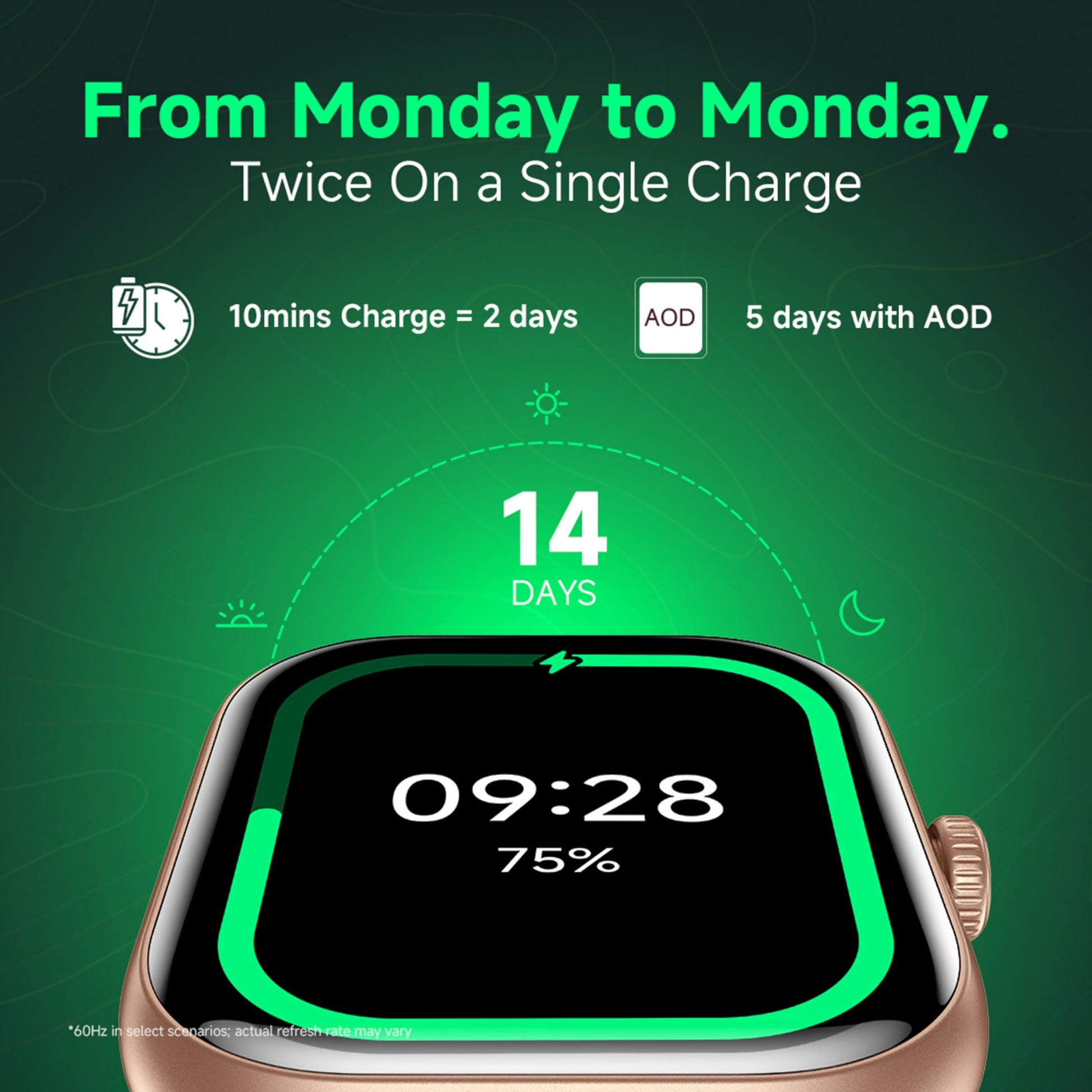 - Battery & Charging: 300 mAh battery with up to 14 days typical use; ~60 min full charge via magnetic cable (usage/settings ke hisaab se vary).