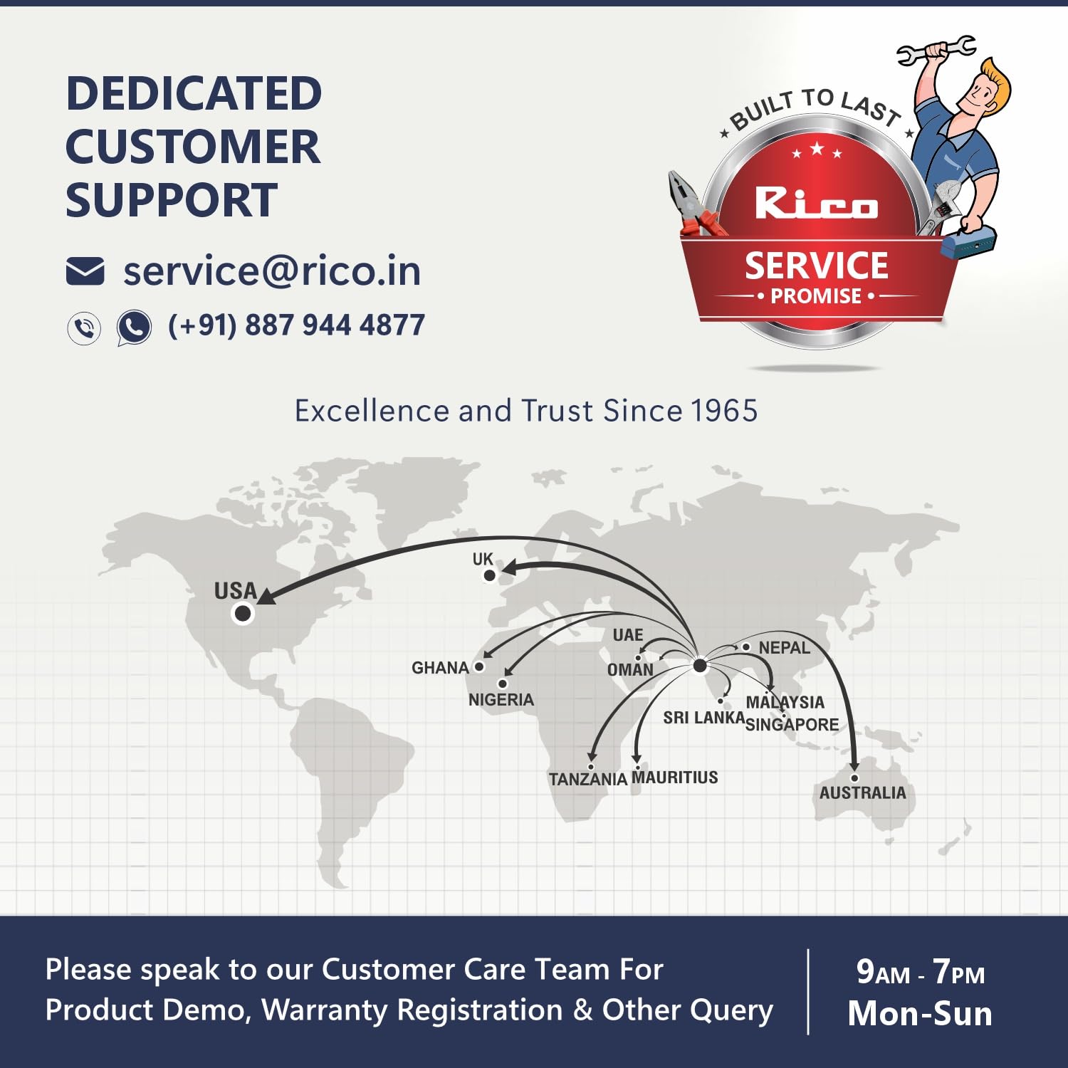 • 2-Year Replacement Warranty - Rico offers a replacement warranty on manufacturing defects only. Simply contact our customer service team and we will replace it with a new one. All india service centers available.