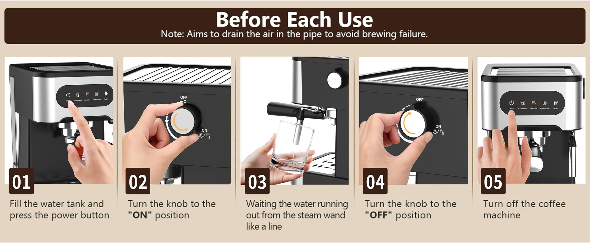 • Professional High Pressure SS Steaming Wand for Quick & Optimal Steaming and Frothing for cappuccinos and lattes.