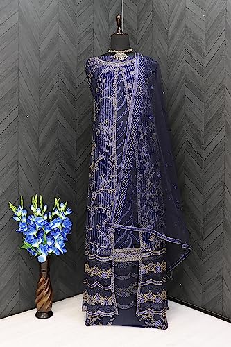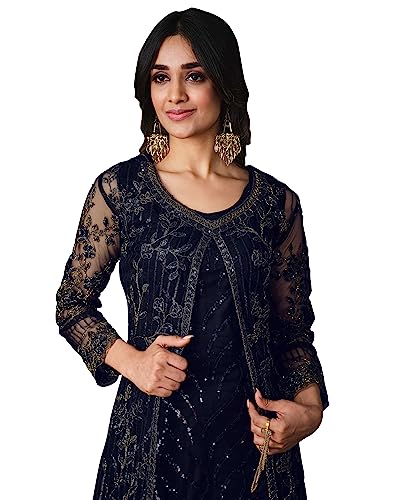 RUDRAPRAYAG Anarkali Net and Satin Straight Suits for Women | Semi stitched Embroidered Dress for Women | Gown With Dupatta for Women 2023 | Gown in Clothing & Accessories