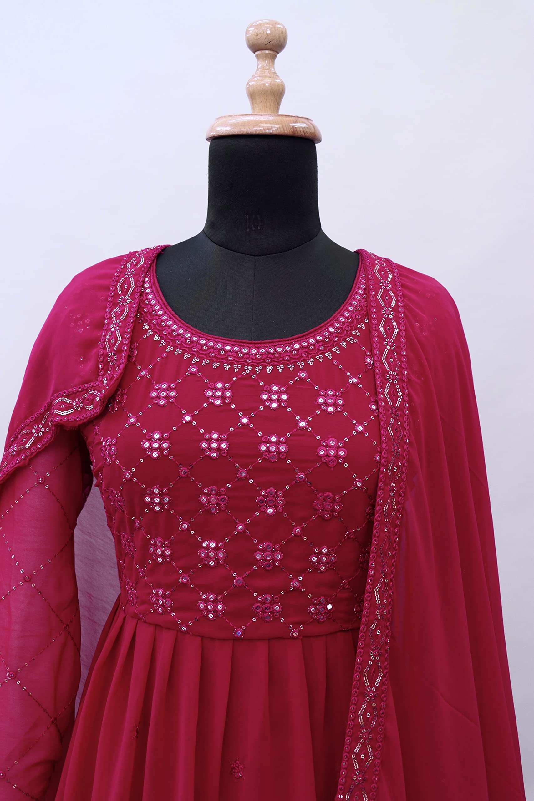 • Top: Heavy Faux Georgette With Embroidery 3 mm Sequence Work With Cotton Thread With Foil Paper Work, Length: Max Up To 58", Size: Max Up To 48"